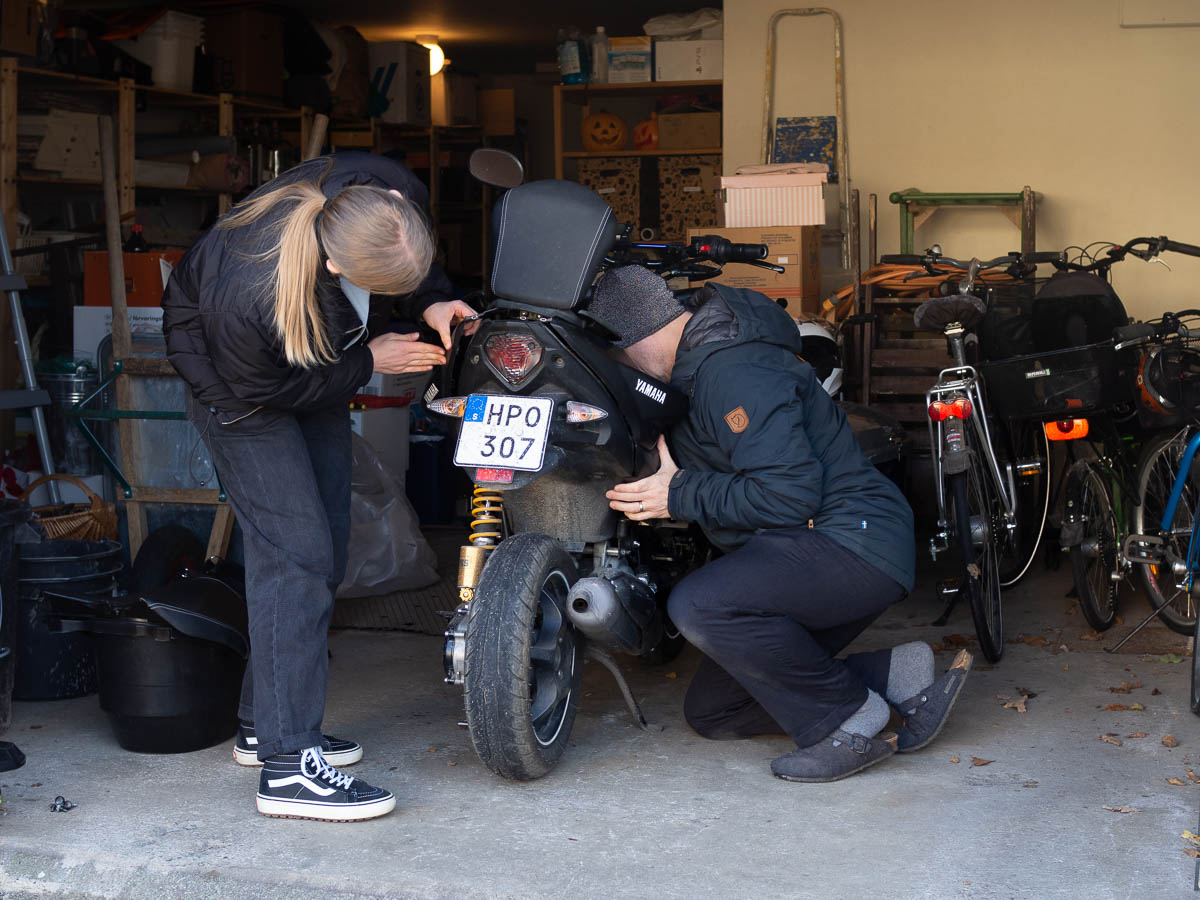 Today she and Eric replaced the moped’s broken footplate. This project involved detaching literally all fairings and assorted other bits (which she listed for me but I already forgot) to access the footplate, and then putting them back again. It took hours. But now the moped is all ready!