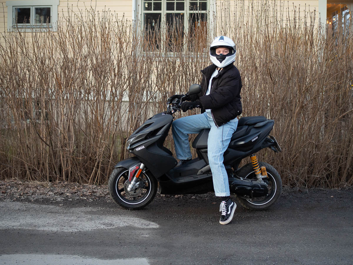 Ingrid bought a moped before Christmas, with all her savings and some support from us as an early Christmas gift. It’s been standing in our garage, doing nothing, for months. She already had her license as well, so she’s been anxious to take it out for many weeks but the weather hasn’t allowed it. Now that the streets are finally mostly ice-free, it’s a go.