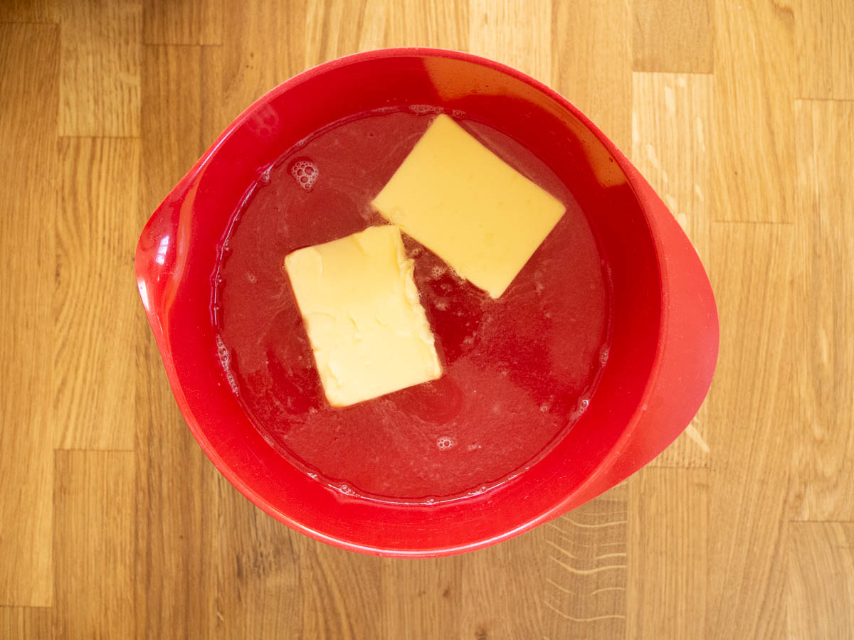 Today (actually today, for real) I discovered that there’s a bonus effect: if you then start e.g. creaming the butter with sugar in the same bowl, the thin layer of water helps keep the butter from sticking to the bowl, which makes for less butter on the sides of the bowl and more of it where you actually want it.