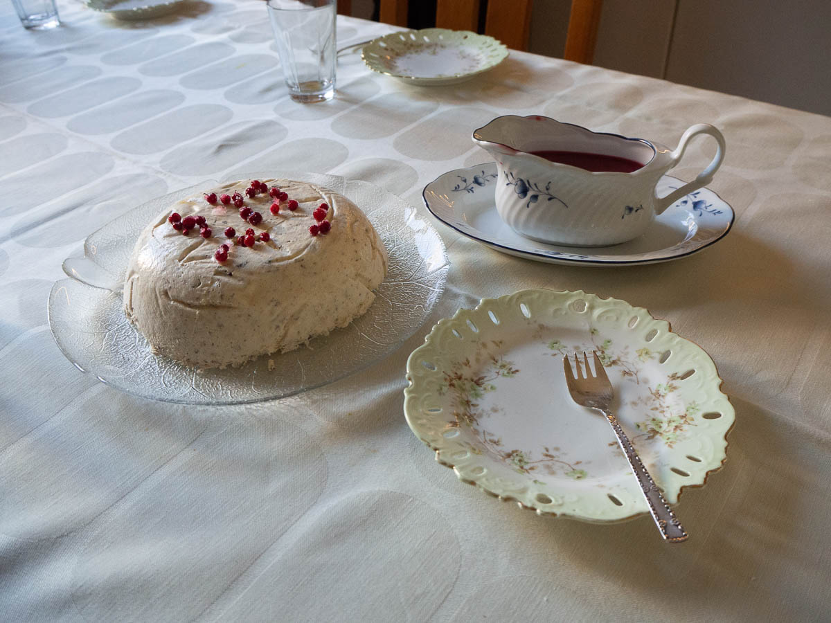 Pasha with raspberry coulis.