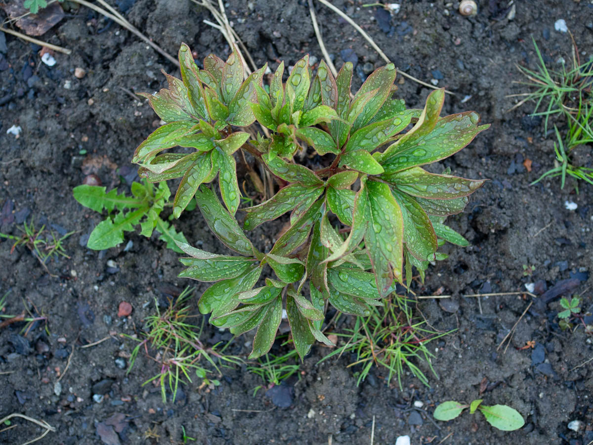 I had very little energy for gardening last season. I planted one peony and one plum tree. The above-ground parts of the peony turned yellow and died earlier in the season than most perennials, so I was worried that I’d let it die by not watering it enough. I’m happy to see it’s back this year. I didn’t kill it after all. (The little plum tree is also still alive.)