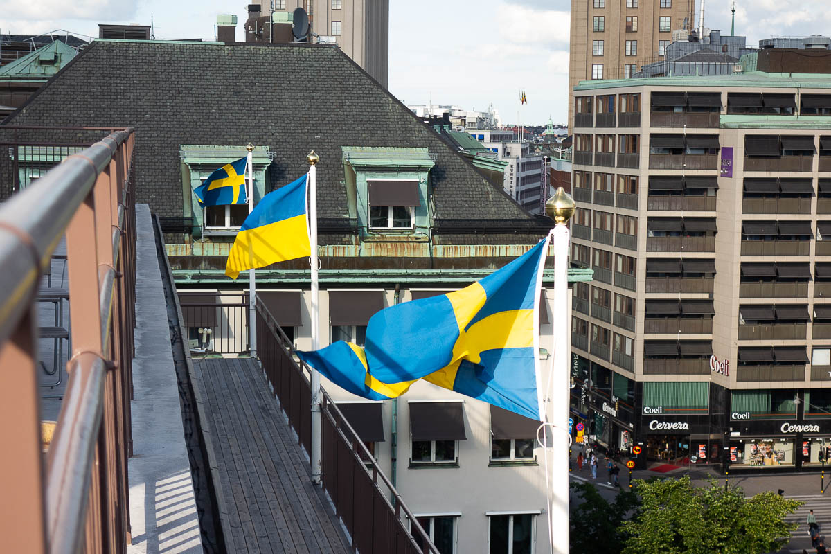 The Ukrainian flag and the Swedish ones go nicely together.