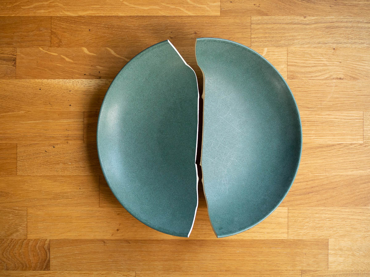 Another one of our Höganäs plates broke. It sounded off when I put it on the table, and a closer inspection showed it to be cracked right across. I could just pull the halves apart.
