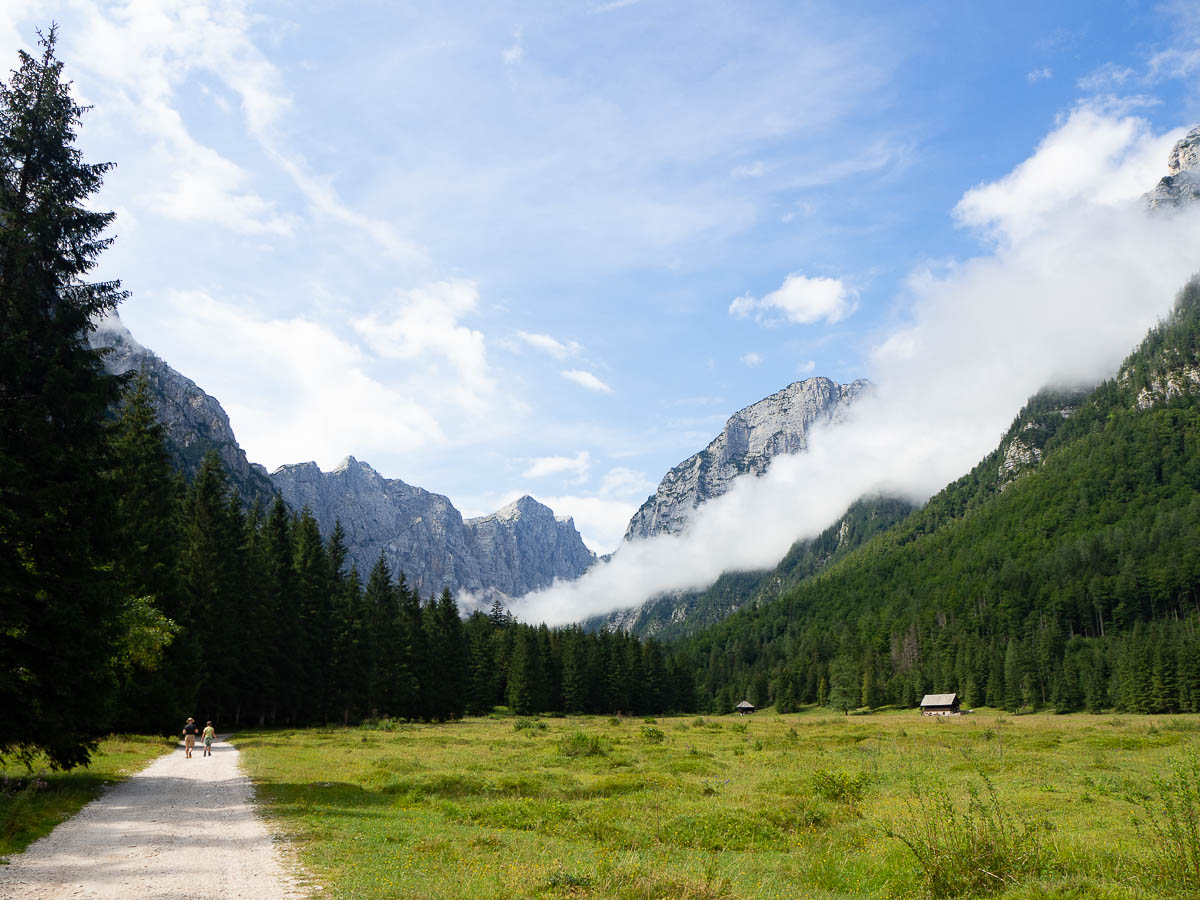 Our first stop was in Krma valley for a short but very scenic walk. Clouds were hanging all the way to the ground. This valley is the starting point for hiking to Mt Triglav, Slovenia’s highest peak. Which we’re not going to do – we’re just here to take in the views.