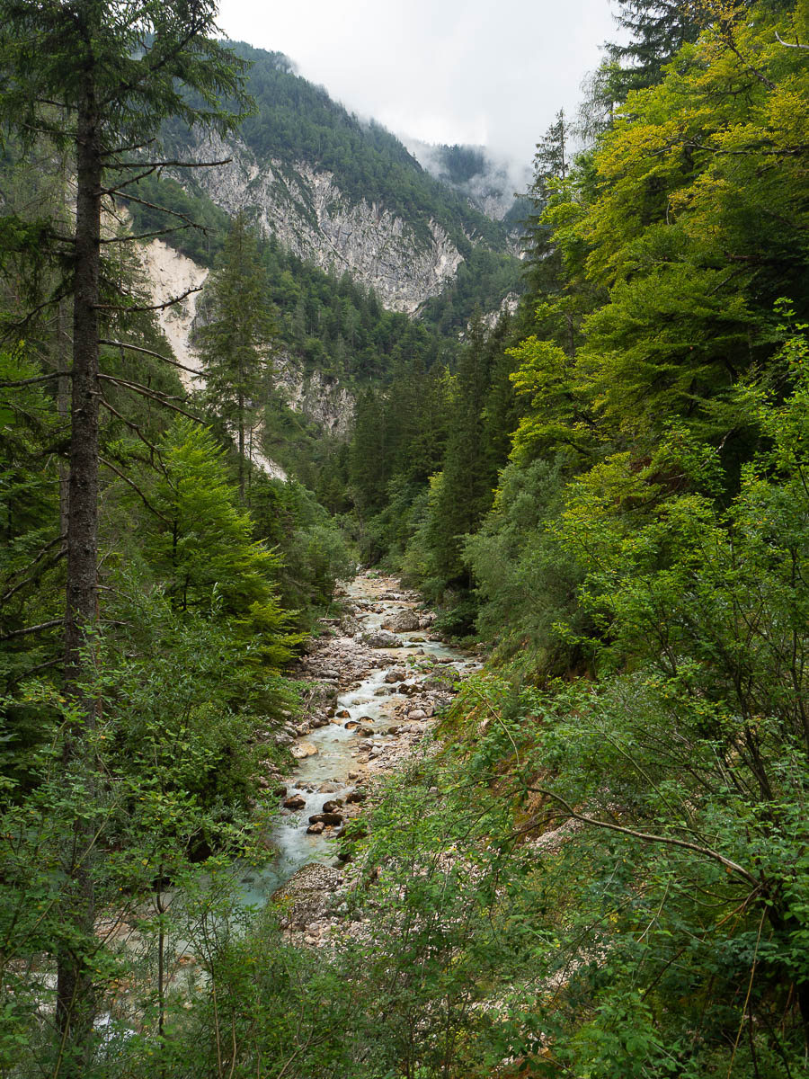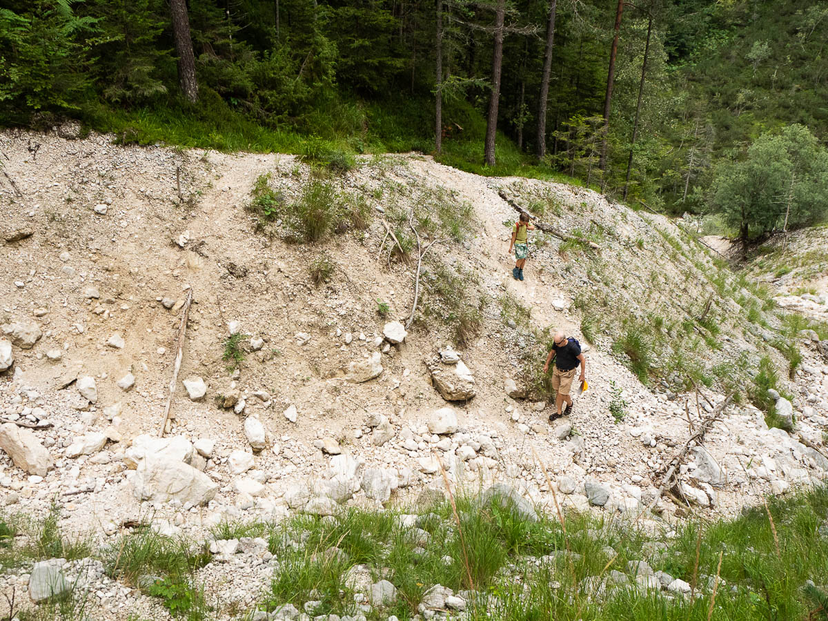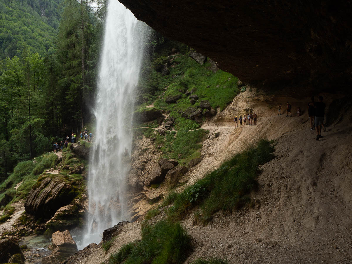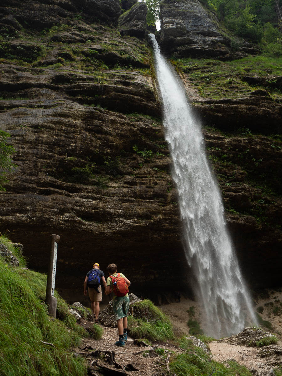 Next we drove to Vrata valley, where we started by visiting Peričnik waterfall. This was a nice compensation after the puny waterfall at Mostnica yesterday, which especially Adrian found a disappointment. Peričnik delivered: plenty of water, impressive height, cool surroundings – and you could even walk behind the waterfall.