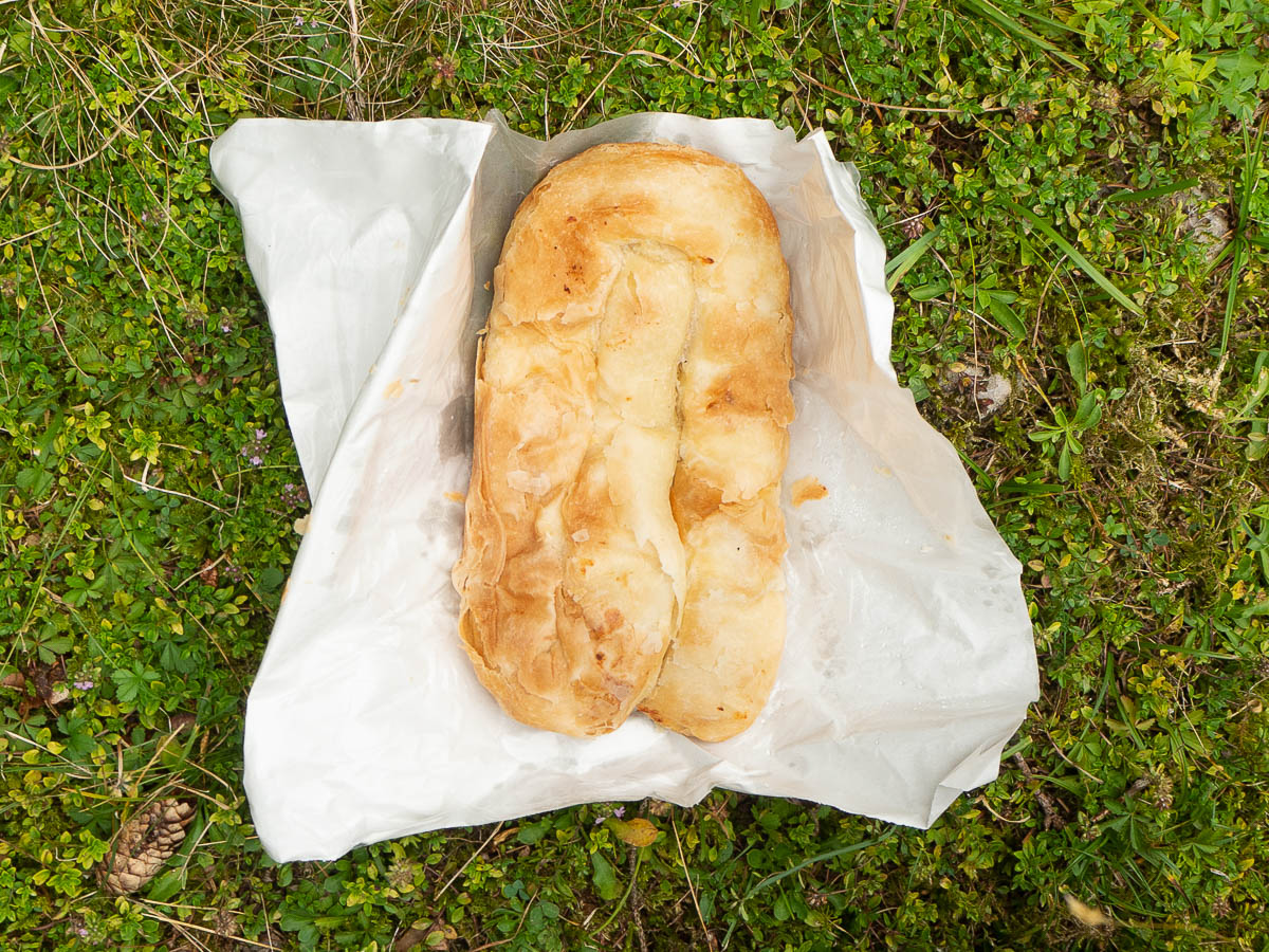 One of the huts hosted a museum, which was closed today for some reason. Several had simple cafes or sold cheese and other milk products. Speaking of cheese, I found these Slovenian cottage cheese pastries that you can apparently buy in most bakeries and supermarkets. The cottage cheese filling reminds me of Estonian kohupiim. I’ve been having these as my packed lunch almost every day.