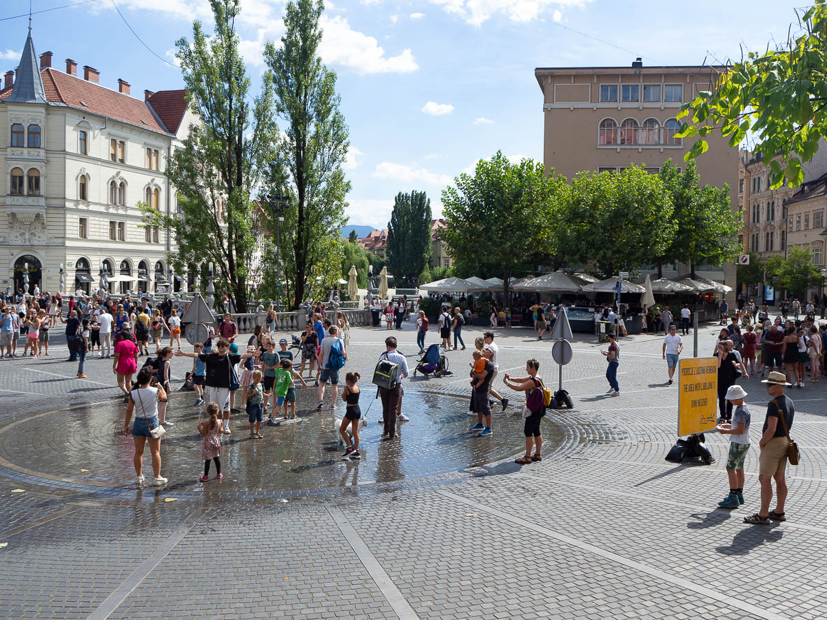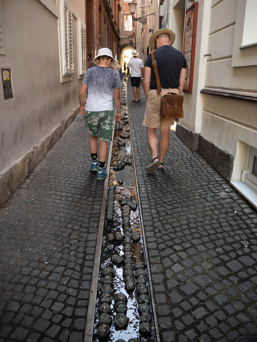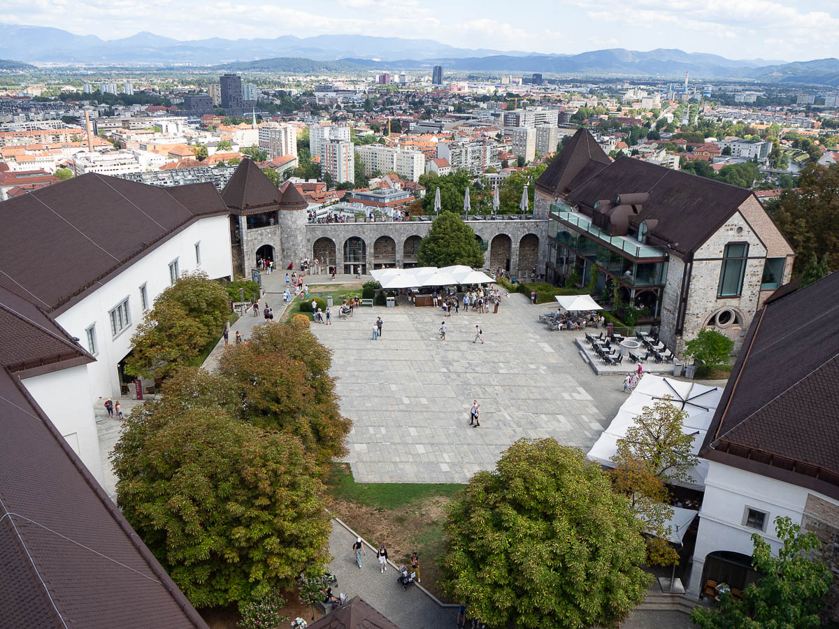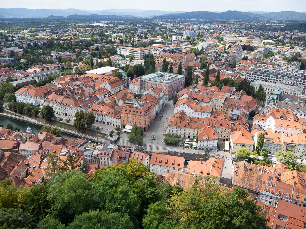 The hiking part of the vacation is over, and we’ll be spending the next two and a half days sightseeing. Today we saw Ljubljana from various angles: street level, from above, and from below.