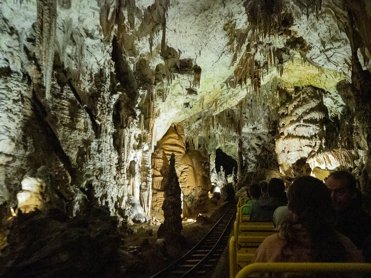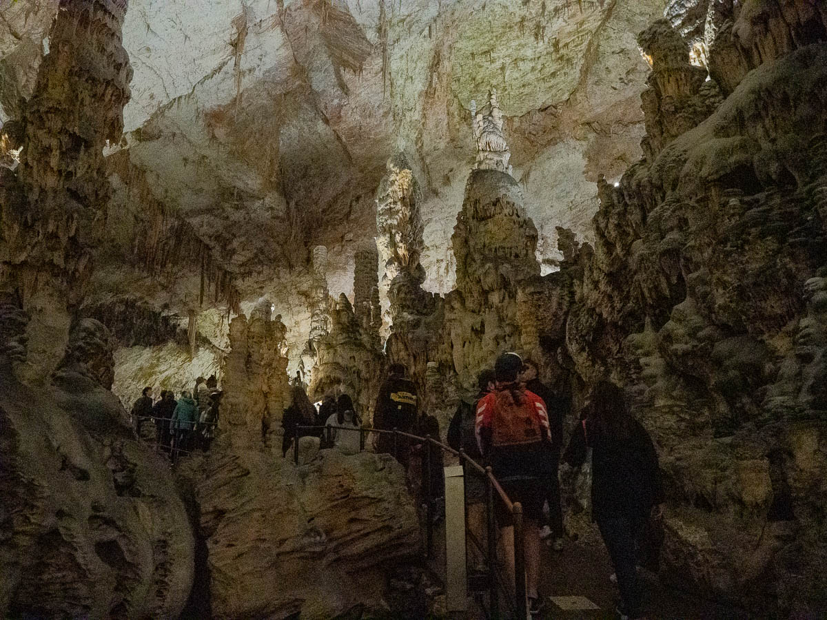 The experience in Postojna was quite touristic, with large crowds (quite well managed, though) and numerous souvenir shops and a little train taking us into the caves. But inside it was truly magnificent. During the two-kilometre train ride from the entrance to the cool parts, I kept thinking that they should slow the train down so we would have more opportunities to actually see the caves, and take photos. And then we got to the end station, and the reason for the speedy ride became obvious – the caves we had passed through were nothing compared to the grand views that opened up in front of us.