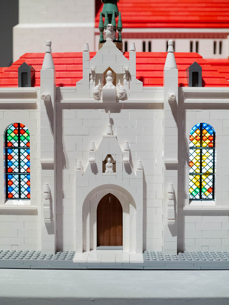 It was interesting to see the different scales used by different builds. There’s the minifigure scale, whereby a standard Lego minifigure is the size of a human. But there were also builds using much smaller scales (which I now know are called microscale), and one of the churches was scaled specifically to 1:100.