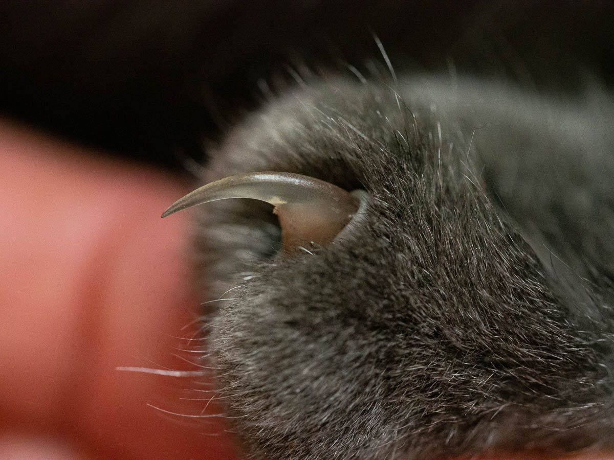Cat claws are fascinating. I knew they were retractable, but before close contact with Nysse, I didn’t know that I could make them appear – I thought that was fully under the cat’s control. But you can just squeeze slightly in the right spot and out pops a claw. Sometimes when Nysse is near me and all relaxed, I poke his claws in and out just for fun.