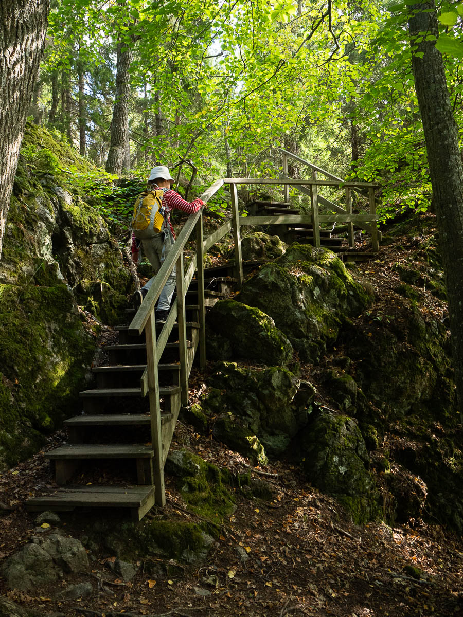 Following the guidance of a route description in a book feels very different from simply following signposts or markings on trees. It takes more attention from the walking itself – having to keep the book at hand, trying to figure out where we are in relation to the landmarks described, how far we’ve gotten, have we missed the turn they described… I liked seeing a new place, but I do like following a single well-marked trail better.