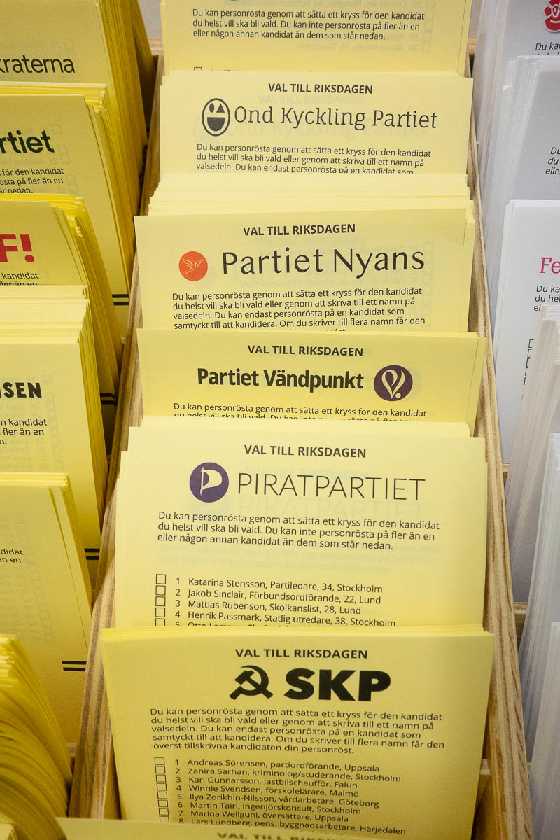 On the national level there are all sorts of weird parties trying to make their voices heard. Some seem sensible but niche; some are unworldly idealists; some are lunatics (like the Swedish Communist Party); some are simply there for the joke. There is a party calling themselves Ond Kycklingpartiet, “the Evil Chicken party”.