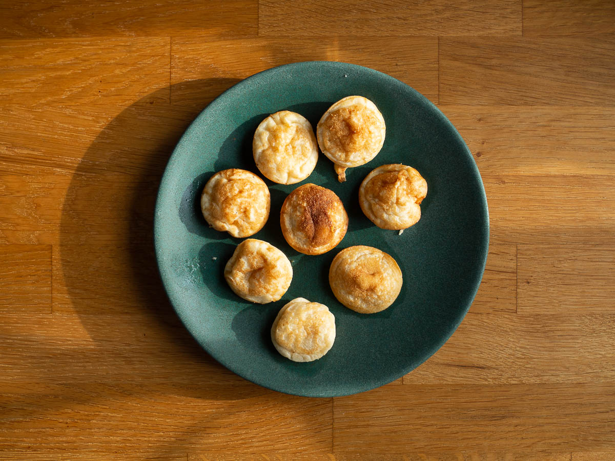 Ingrid spotted these mini-pancakes at the supermarket that looked just like the quark pancakes we had in Estonia. I think we both knew these wouldn’t be as good, even before opening the package, but some part of us still hoped. And of course they were nothing like the Estonian ones. The Estonian quark pancakes (which even came in several varieties, like one with banana and one with oats, I believe) were delicious enough to eat as a snack straight from the bag. These quarkless Swedish ones were bland even after heating. The quark makes a difference, of course, but store-bought Swedish pancakes are also always disappointing compared to home-made ordinary pancakes. I don’t know what they do with them – or what they don’t do. Skimp on butter and fry them in oil?