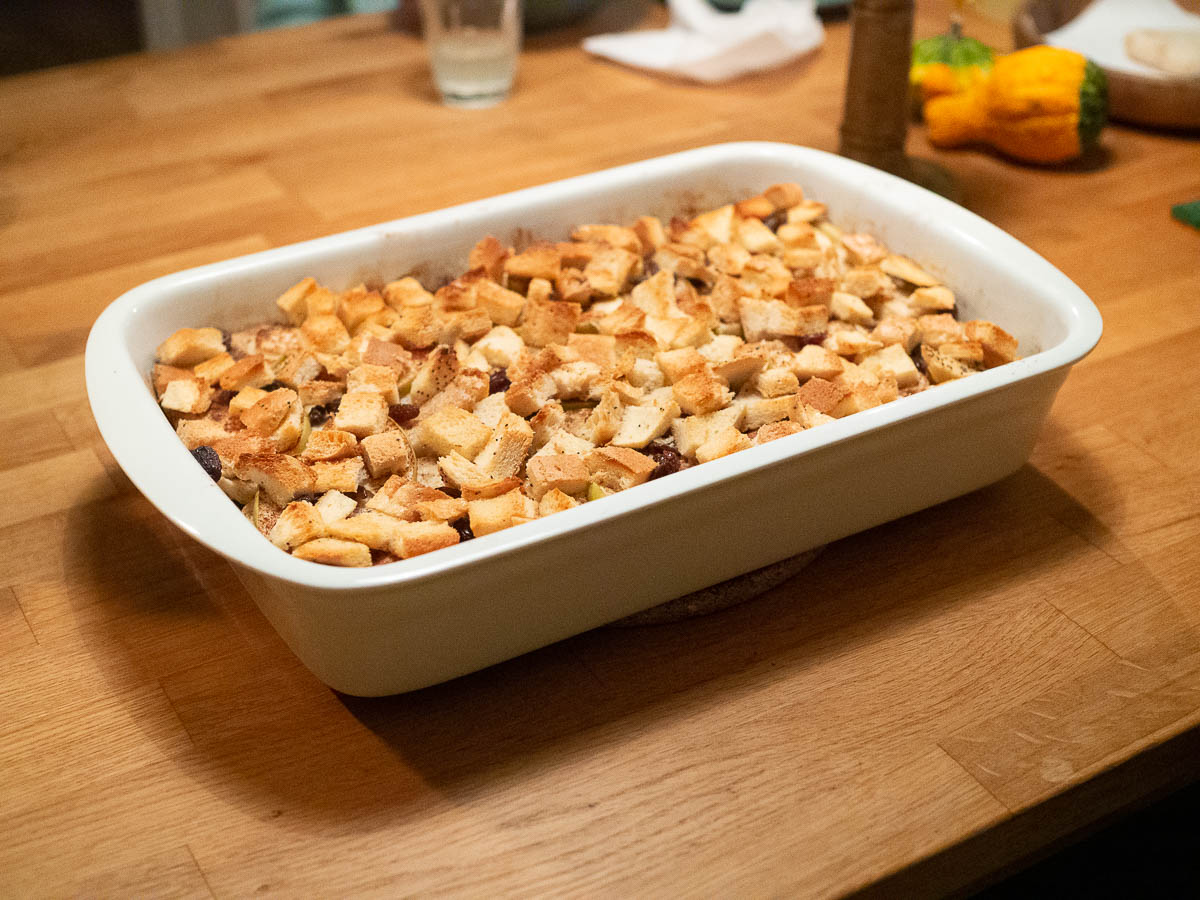 I’ve used the end slices for croutons in the past and used them for a deconstructed French onion soup, and for salads. Today I wanted to make bread pudding, which I haven’t eaten since I was a child. It was a thing in Estonia (saiavorm) but it’s virtually unknown in Sweden. I don’t think they even have a word for it.