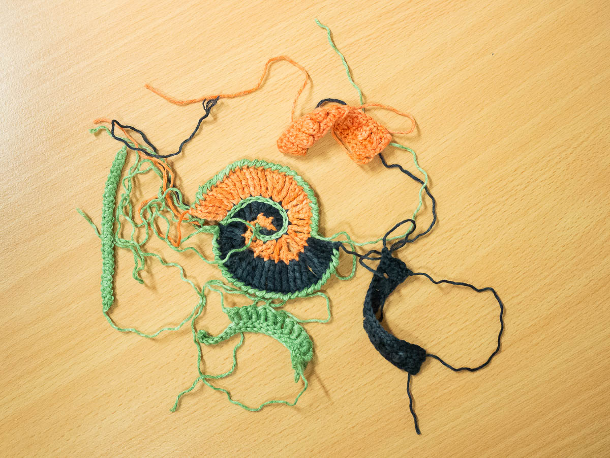 I attended beginners’ class in freeform crochet today. It was less structured than the embroidery course and more just “let’s try a few things”.