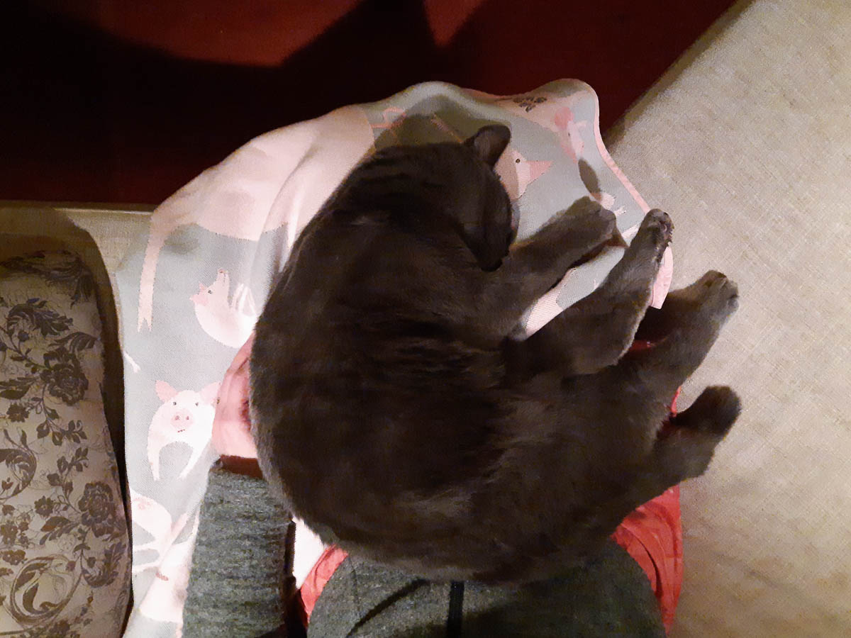 He’s been really cuddly today. He spent two hours at lunchtime in my lap, until I was starving and was forced to move him. I think maybe it’s the colder weather. During the warmer season he’d often fall asleep on me, but then move after a while – I’m guessing because he got too warm. Now warm is good.