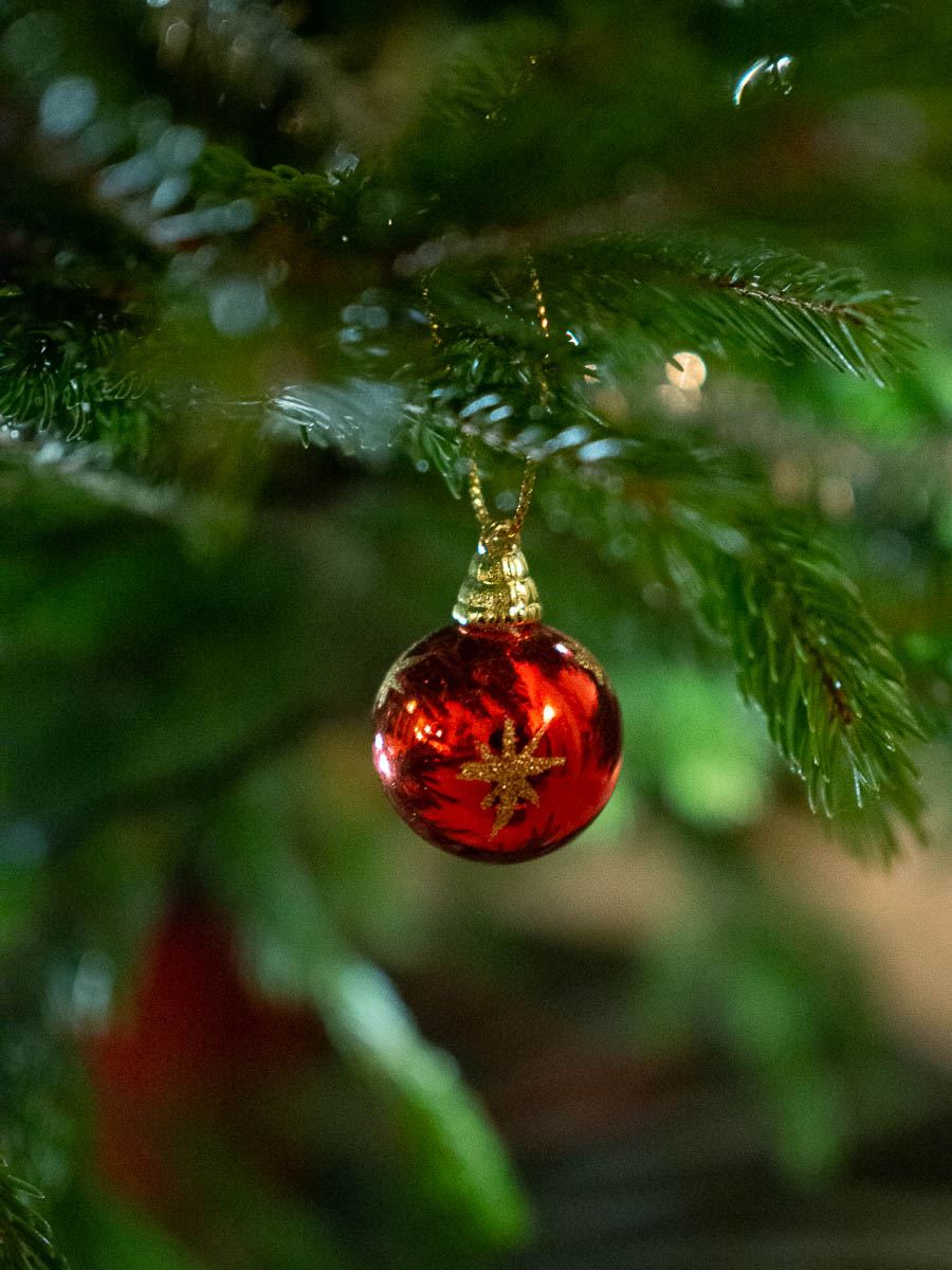 The tree may have seemed like a safe and familiar place in an otherwise scarily new house. At the time, Nysse had been with us for just a few days, and he used to live in the countryside before moving in with us. Or maybe it was the opposite and he climbed up there because it was novel and exciting with all the shiny, sparkling ornaments.