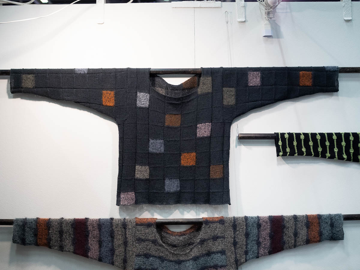 I really liked these sweater designs. Just a plain black base yarn, and the simple but striking design arises from combining it with a colourful mohair yarn. Such a simple but powerful idea.