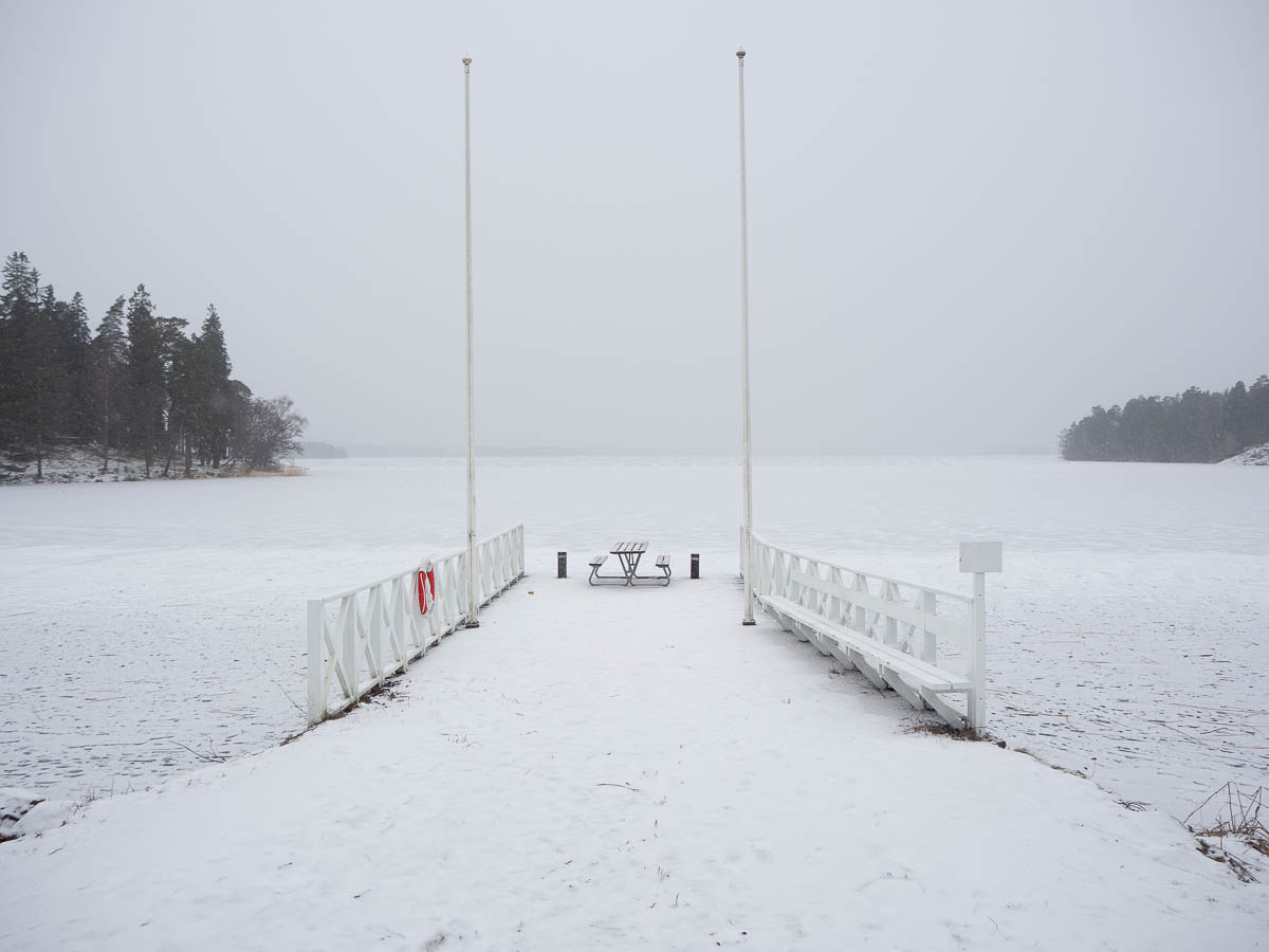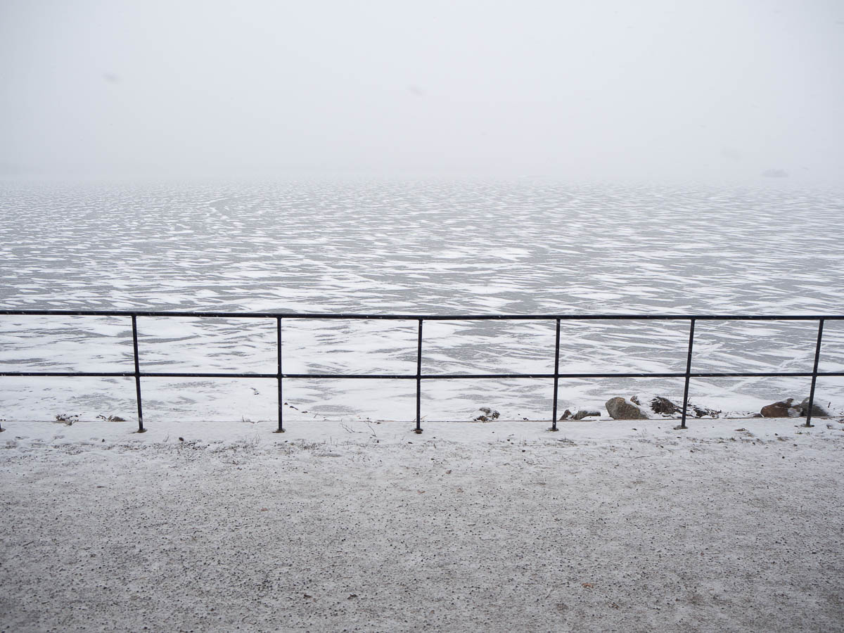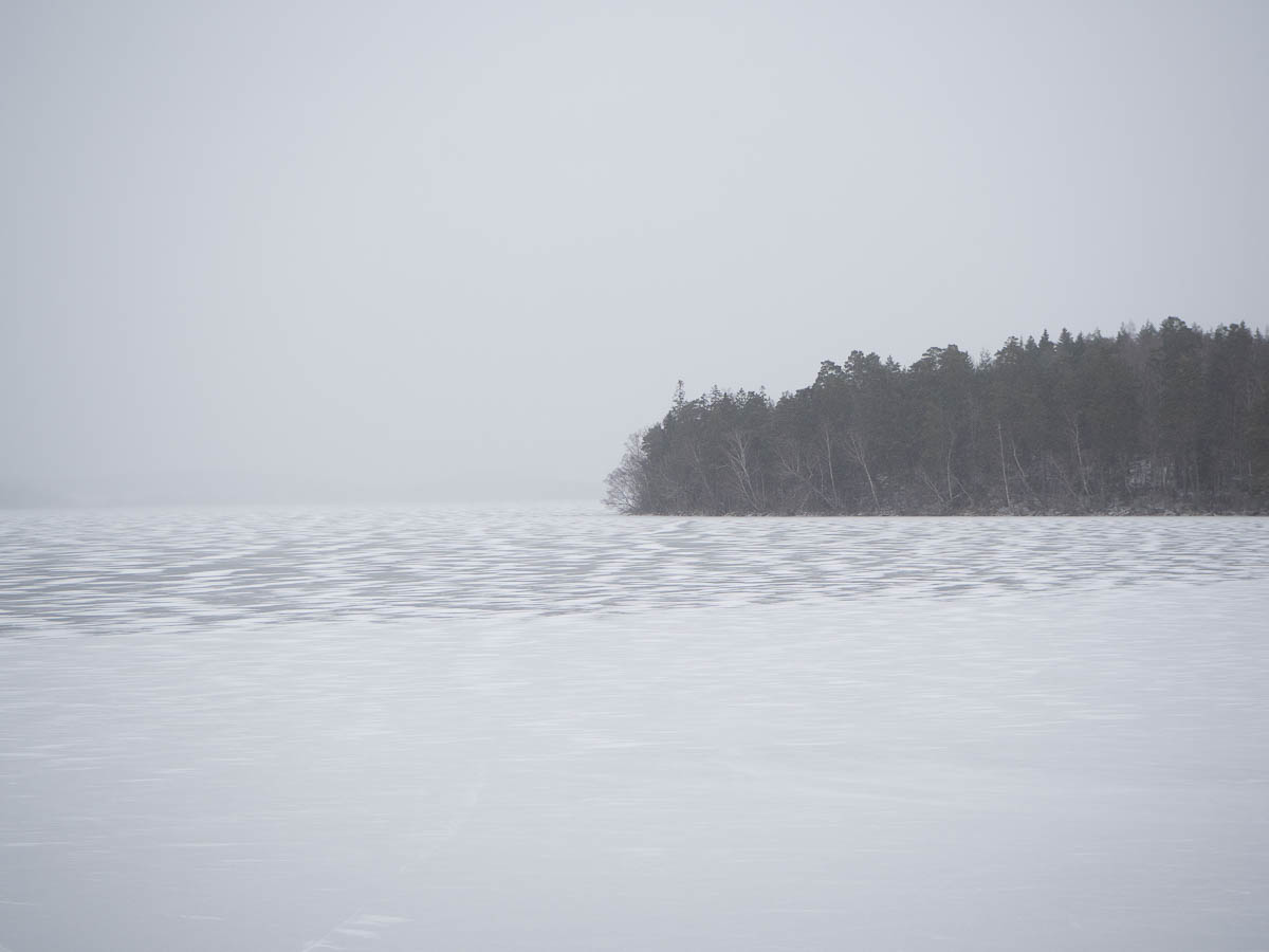 It was overcast, windy, and snowing lightly. On the one hand: nice, firm, mud-free ground to walk on, and dreamlike views out over Mälaren.
