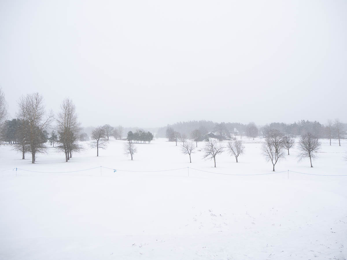 Getting closer to Barkarby, the trail started doing weird things. Instead of going across the large open green area, the orange markings took me along the edge of the field, only to then follow a large, noisy road. A closer look at the map showed that the field was actually a golf club, and during summertime you probably can’t just hike across it. In winter, though, you can! I backtracked and cut across the golf club’s grounds more or less randomly. There was more backtracking on the other side where some sections had fencing around it, but I got out in the end.