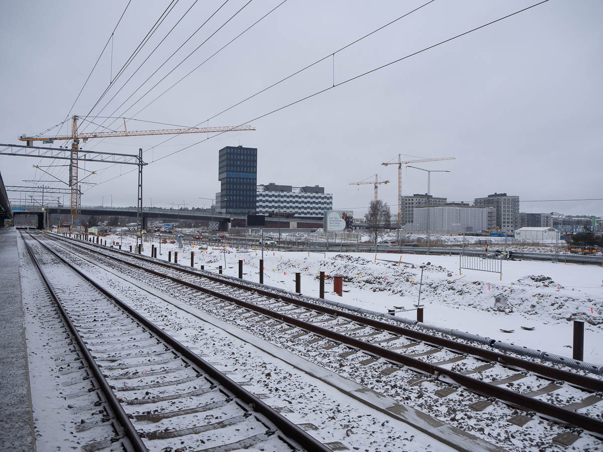 A whole new residential area is coming into existence on both sides of the railway tracks.