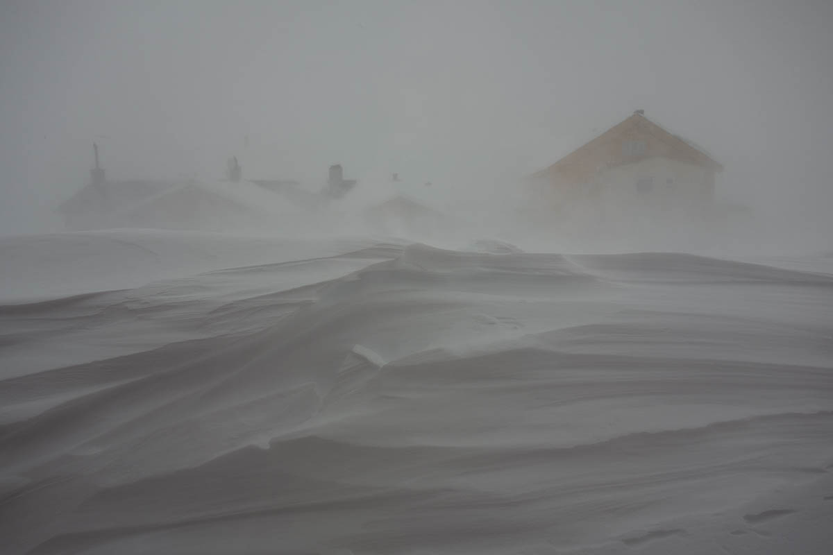 As it was, moving between the two buildings at Dyranut – one of which had all the common areas, including the toilets, and the other all the bedrooms – was very challenging. We avoided it as best we could, but still needed to make the trip a few times during the day and evening. It was just a 20-metre walk – but with steep banks of snow, piles of soft snow, no visibility due to the air being full of yet more snow, and gale-force winds. On my first trip there and back I think I fell over four times. For the next time, I brought a ski pole for help.