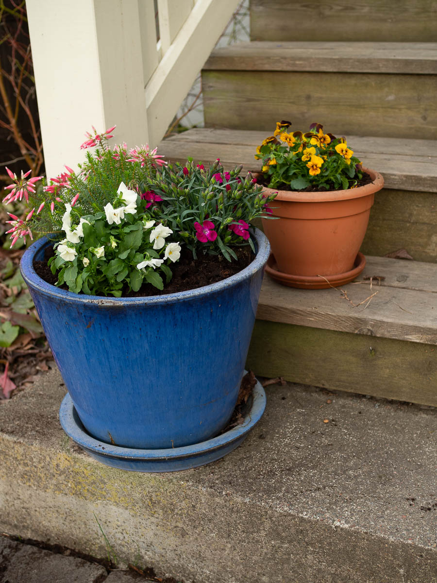Bought and planted some spring flowers for the porch, for the first time in several years, in yet another step to getting back to the way life used to be.