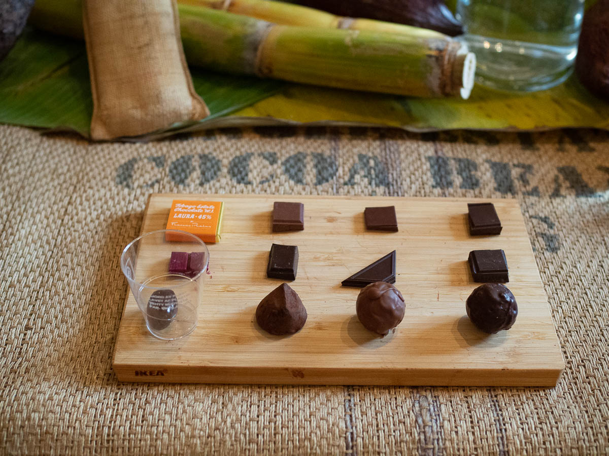 I have to start by saying that Duane at Small Island Chocolates did a truly excellent job. Welcoming, knowledgeable, enthusiastic – he made this a really enjoyable experience. The tickets were sold through a generic “events and experiences” company so I was sort of prepared for a somewhat commercial and impersonal event, but this was the complete opposite. Several of the chocolate varieties we tasted came from Duane’s own chocolate plantation on Tobago, and we were offered pieces of nearly day-fresh batches of chocolate.