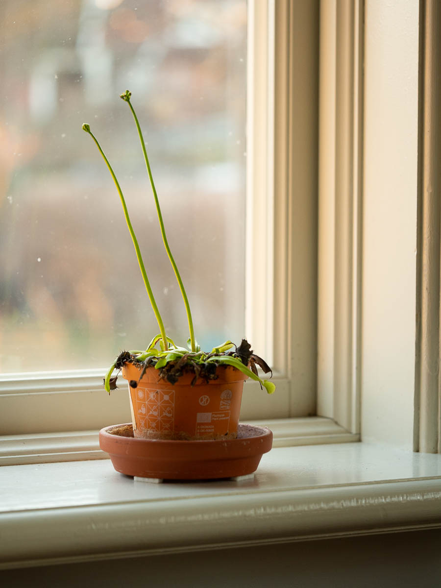 The Venus flytrap isn’t looking quite as lush and happy as last year, but it’s sending out flower stalks and making new leaves.