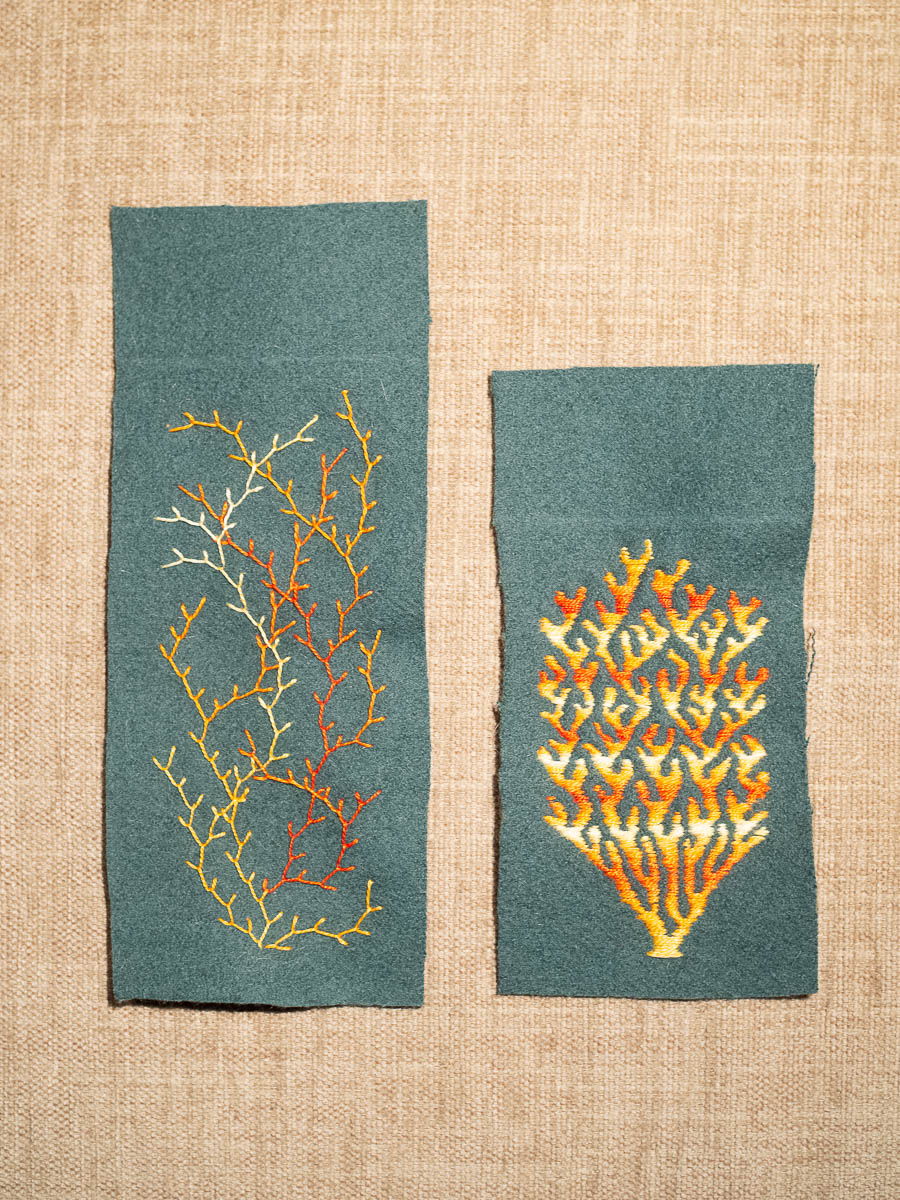 Instead of something purely abstract, I did the stitching in the shape of a coral.