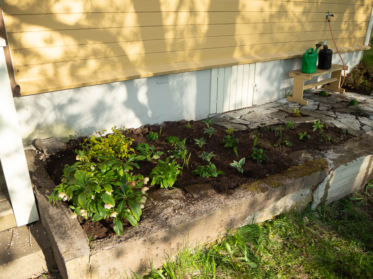 Adrian and Ingrid both wanted to be involved in the plant shopping, so we ended up with perhaps a less coherent planting than I usually do. I picked some, Adrian picked some, Ingrid picked some… And some of the plants I had in mind were out of stock at Ulriksdal, so I had to replace them.