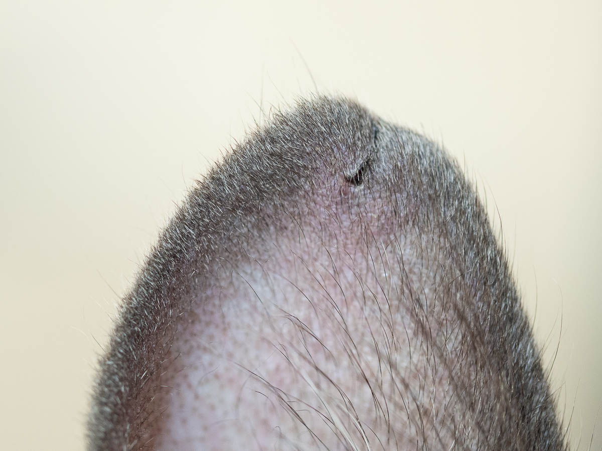 Nysse has been in a fight, by the looks of it. There’s a small tear at the tip of his right ear, and an even longer scratch on the other side of the ear.