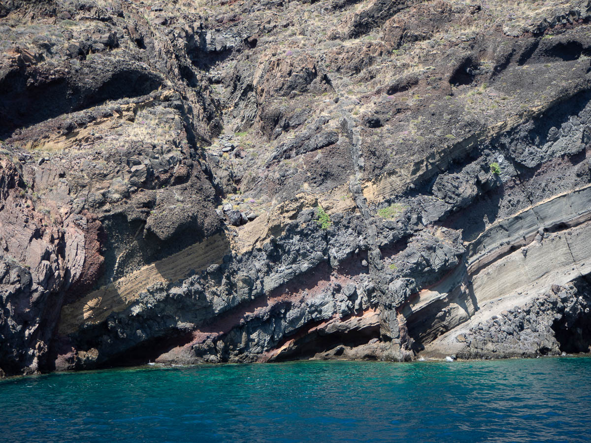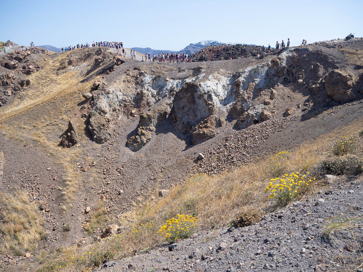 In the middle of the island we could see the main crater of the volcano. It’s still active and there’s steam and smoke coming out of cracks in the rock, over on the other side where the rocks are covered with white deposits of something.