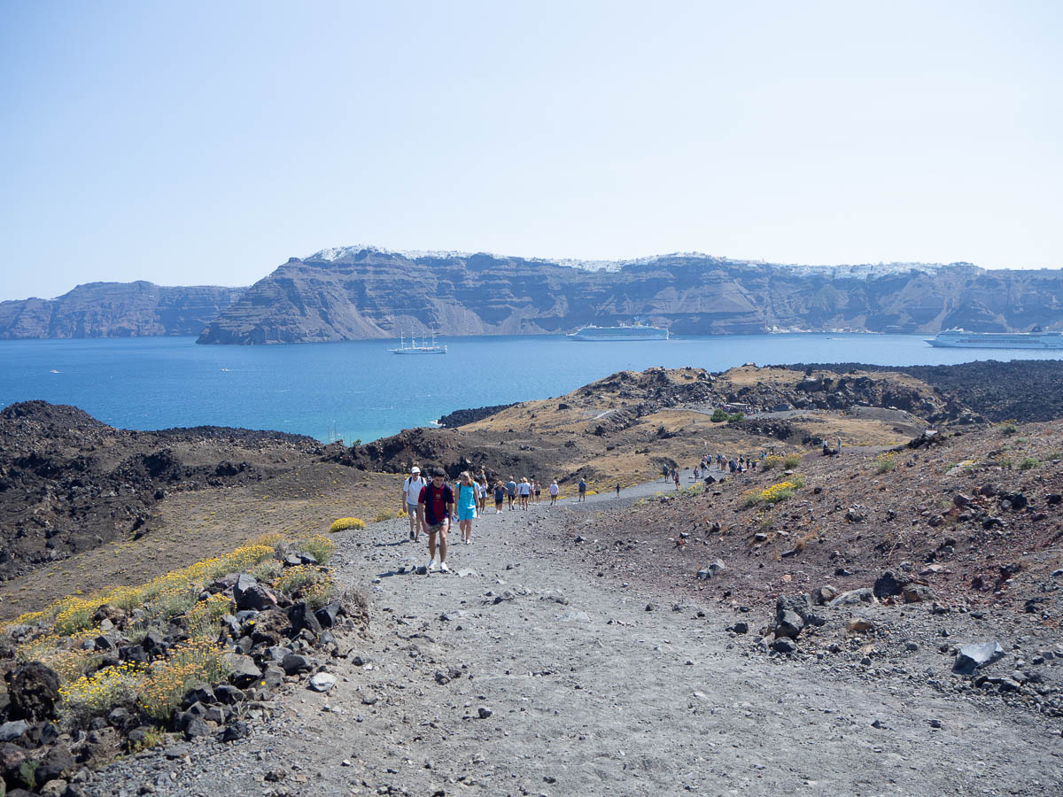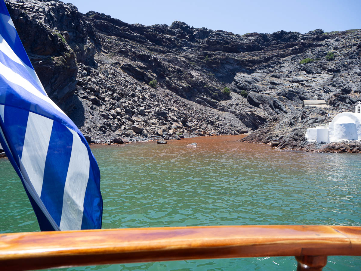 The second island, Palea Kameni, is so small that the boats don’t even land there. They stop a small distance away to give the tourists a chance to swim to the hot springs next to the island – where the water is rust-coloured.