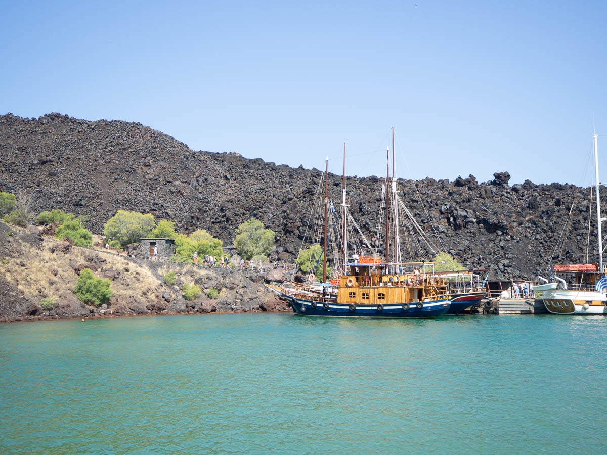 Boat trip to the three smaller islands next to Santorini – Nea Kameni, Palea Kameni and Thirassia.