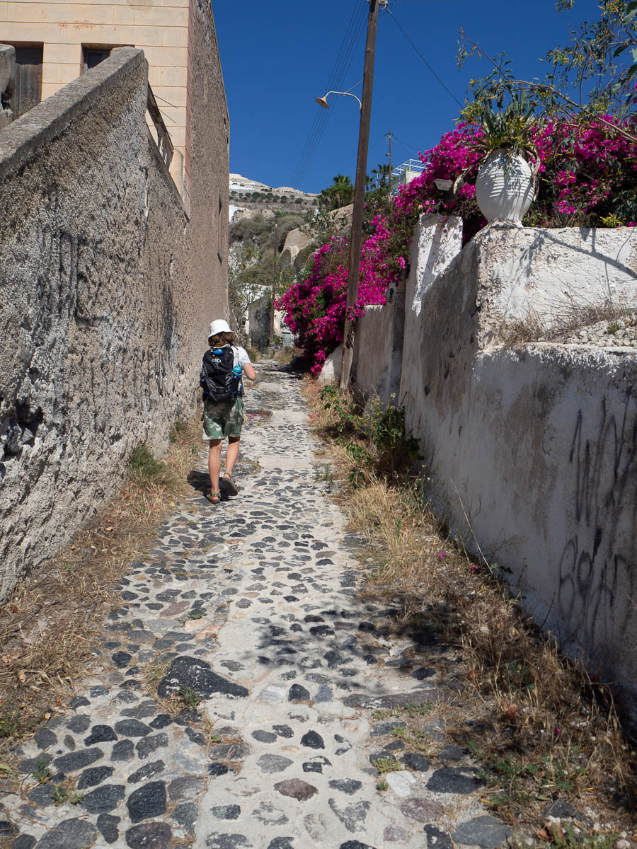 We are sort of running out of hikes on this island. I can understand why many hiking holidays combine half a week on Santorini with half a week on Naxos. I did find one more promising walk near Kamari, though. Not to any place special – just from one village to another.