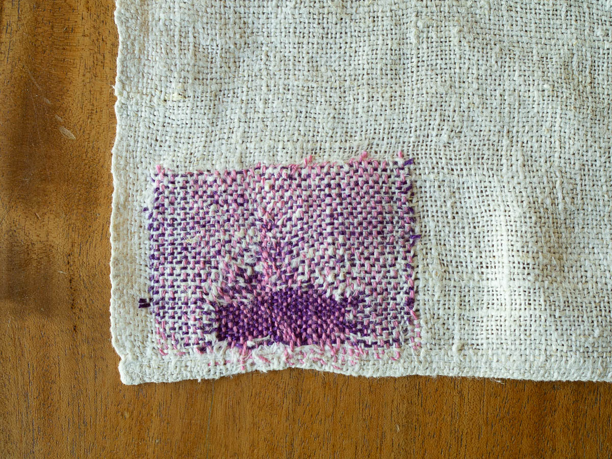The darning here is basically rebuilding the towel, and from a practical point of view it’s probably not worth the effort, but it’s very meditative work.