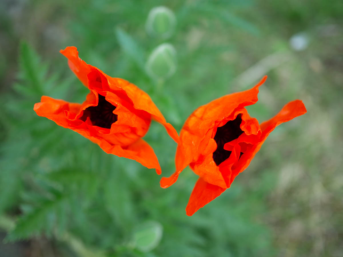 Poppy flowers are so red that it feels like a visual glitch, like burnt-out pixels, like a hole in reality.