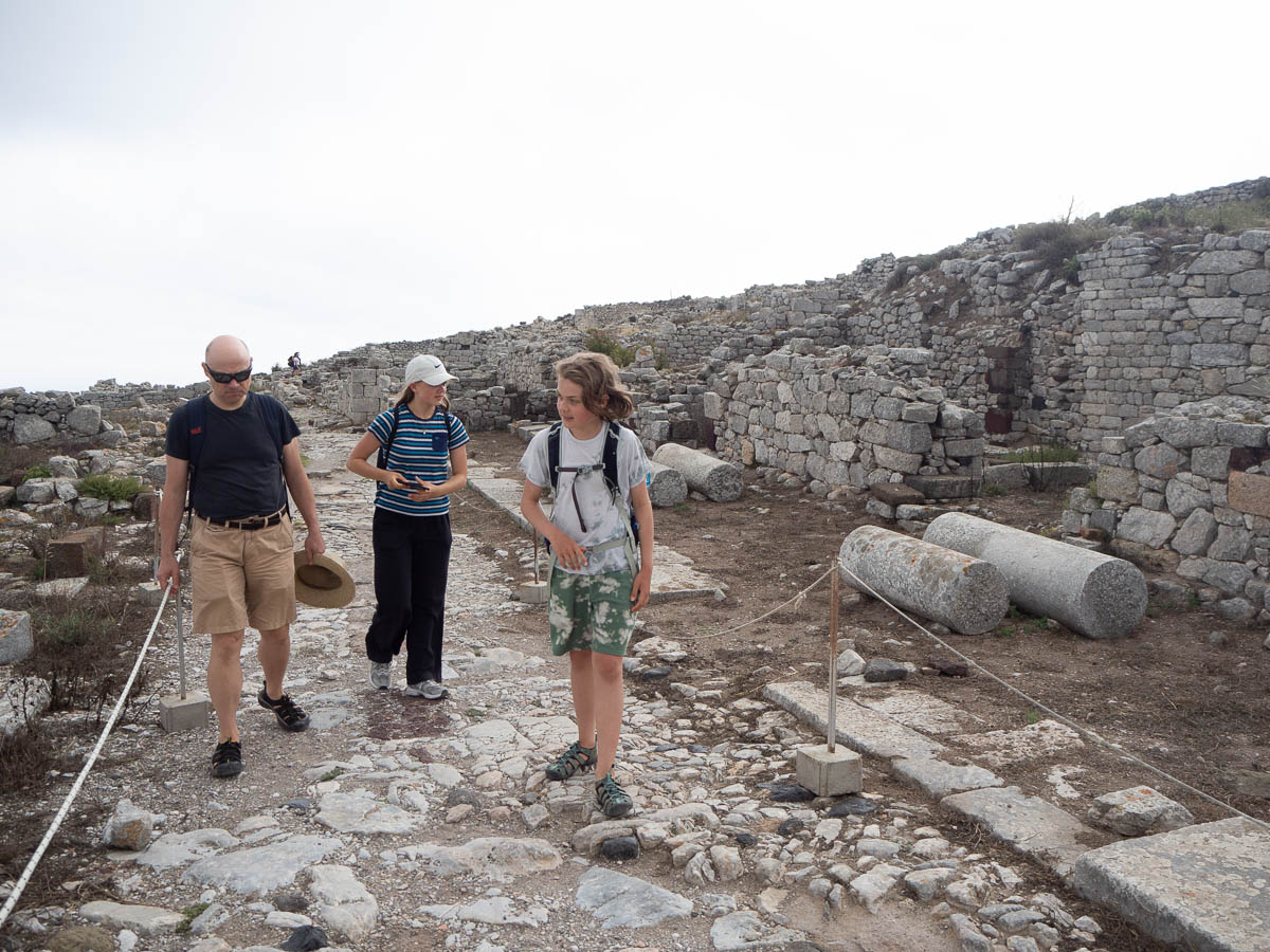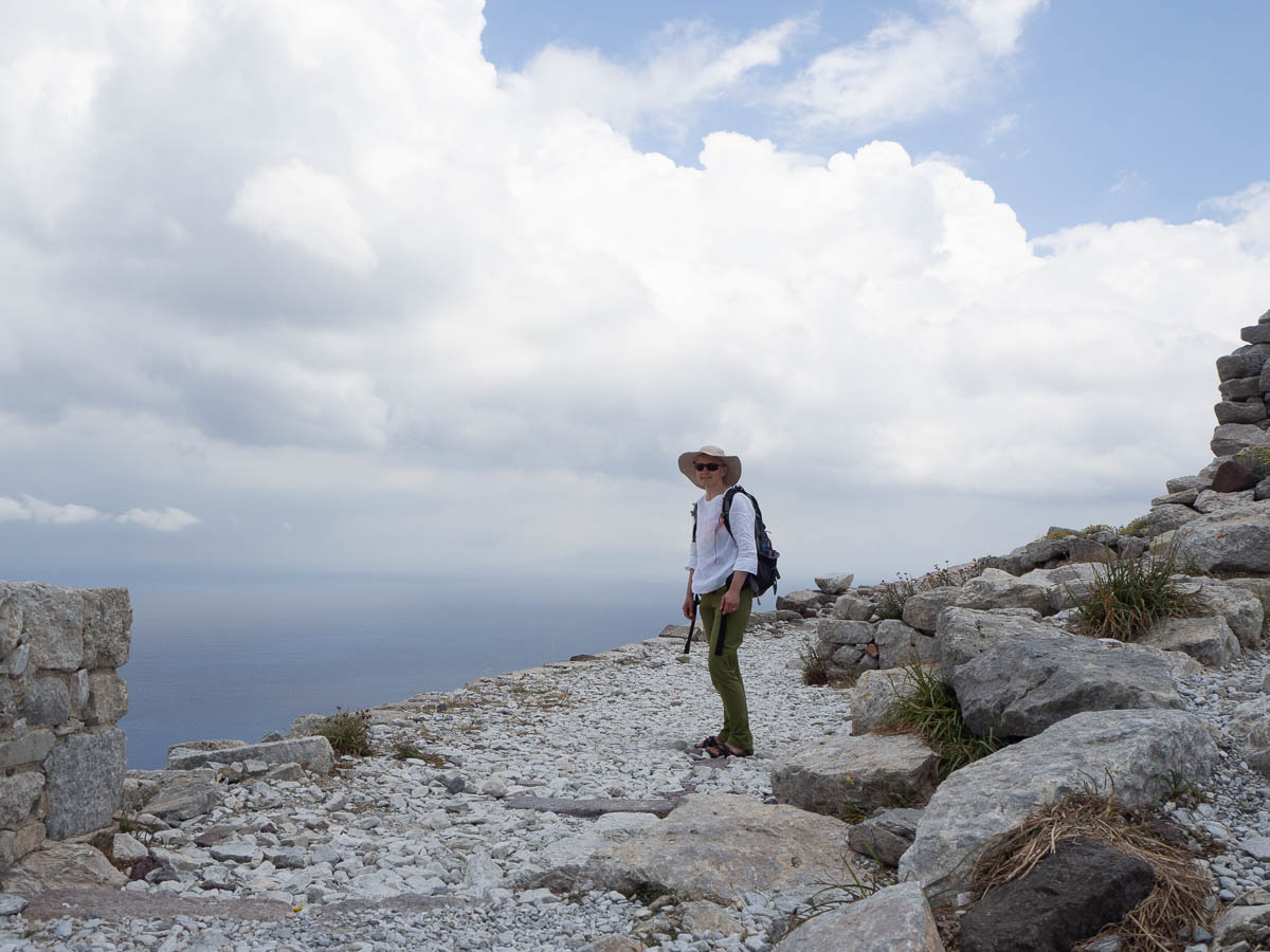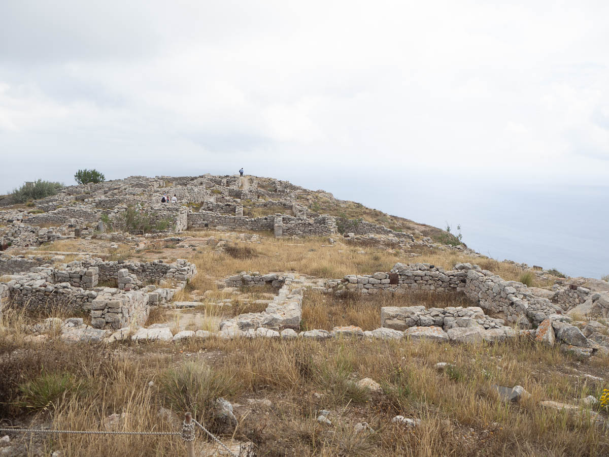 At the top of the hills, we came to the site of ancient Thera, a Bronze Age town destroyed in the volcanic eruption that destroyed most of Santorini and ended the Minoan civilization. It was amazingly well preserved – paths, walls, pillared halls, carved reliefs still fully visible.