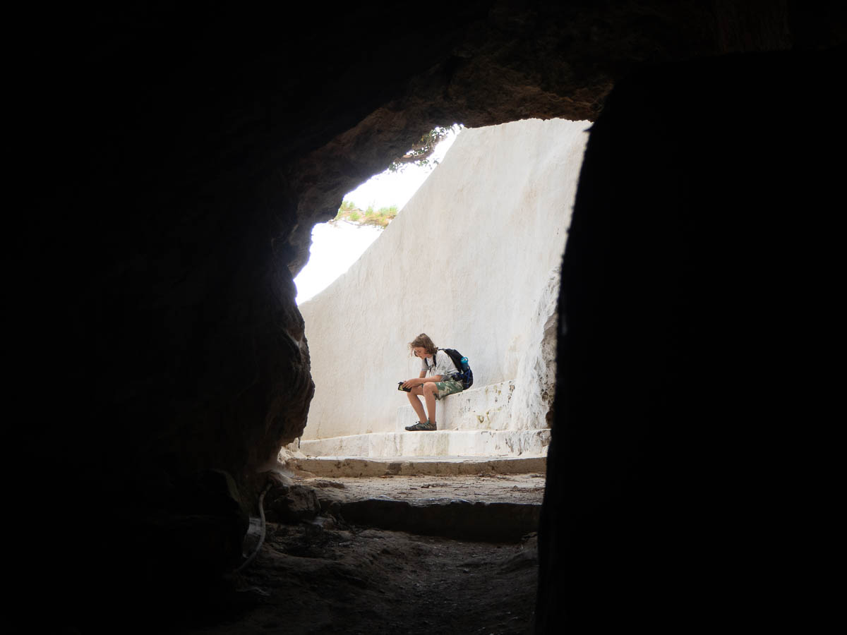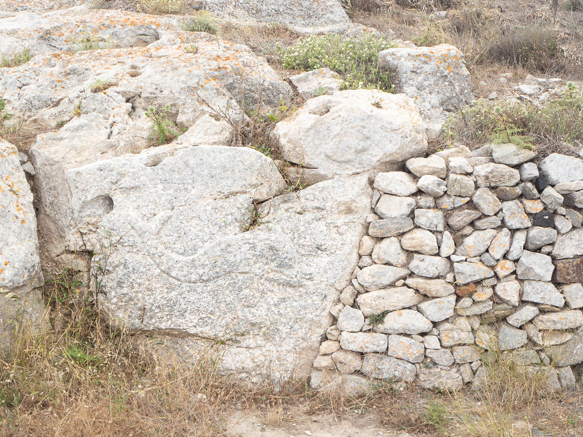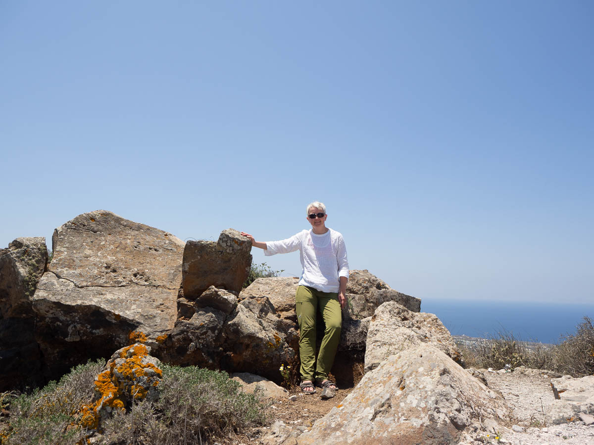 At the top of the hills, we came to the site of ancient Thera, a Bronze Age town destroyed in the volcanic eruption that destroyed most of Santorini and ended the Minoan civilization. It was amazingly well preserved – paths, walls, pillared halls, carved reliefs still fully visible.