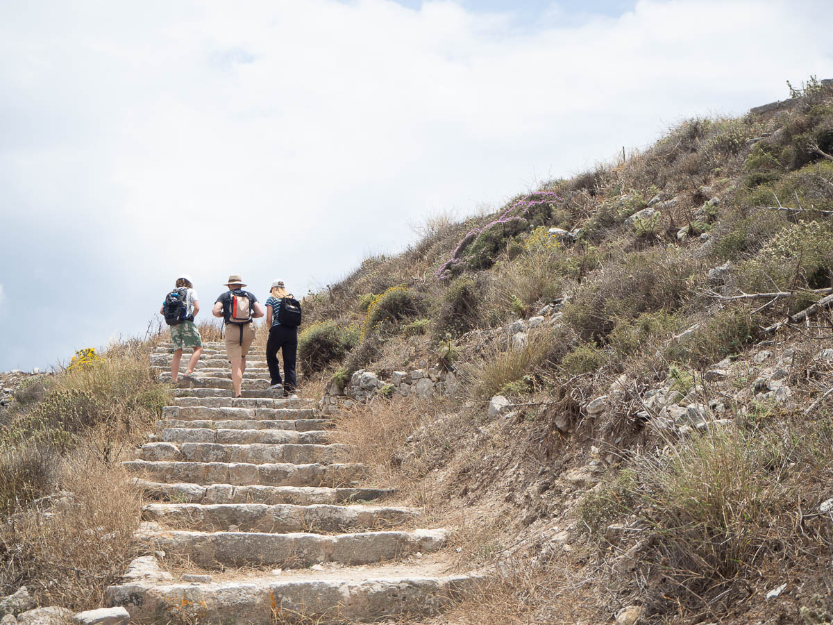 The walking took us up, and up, and up some more. First in zigzags along the road, and, after the pass, along paths and stairs.