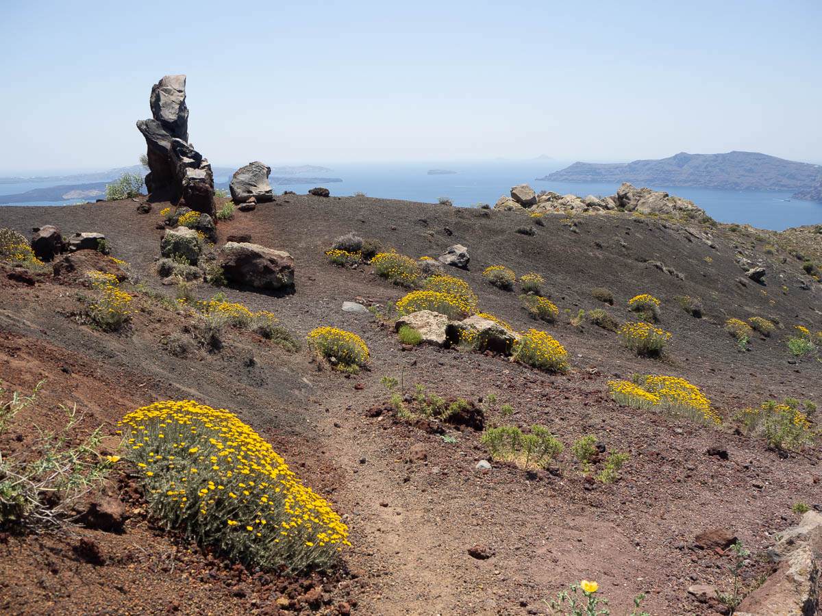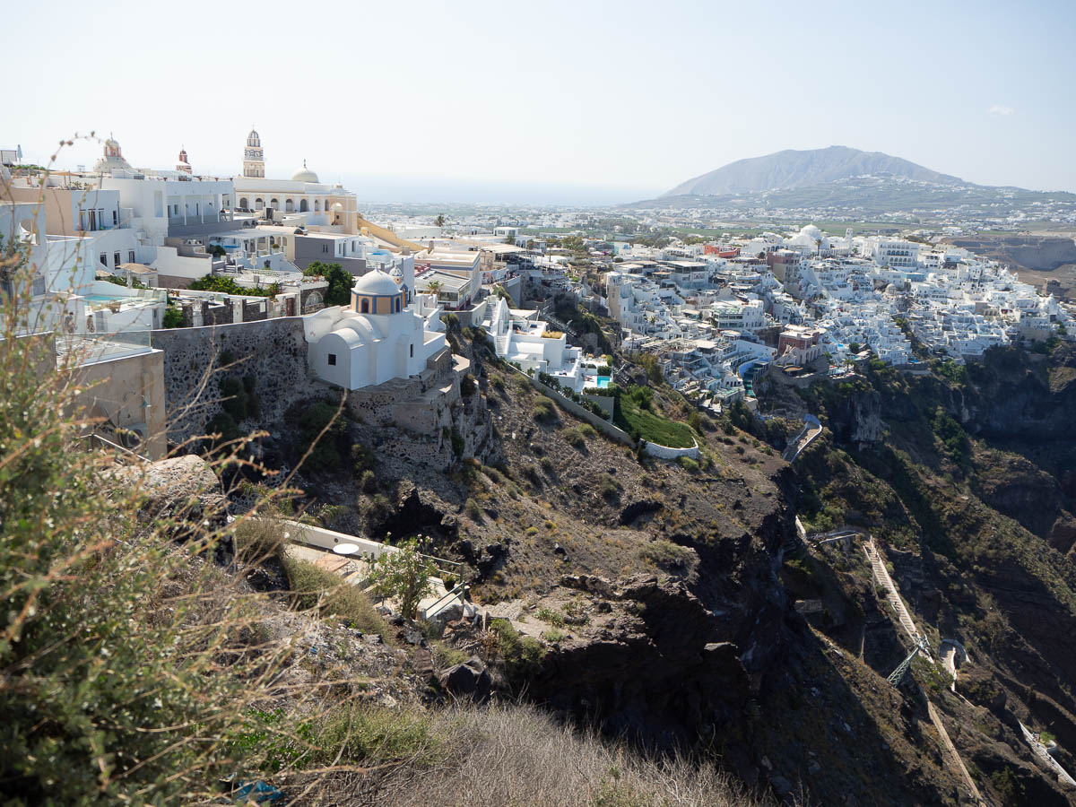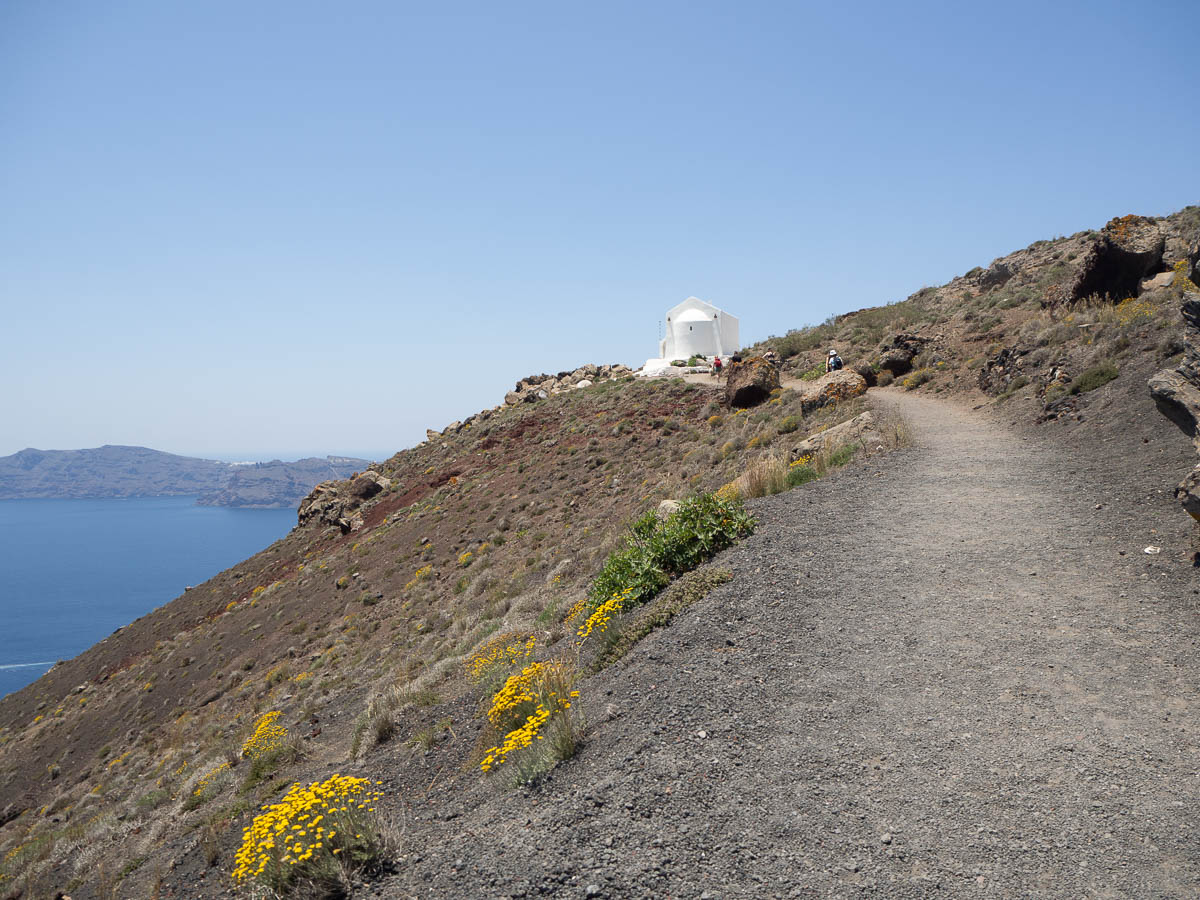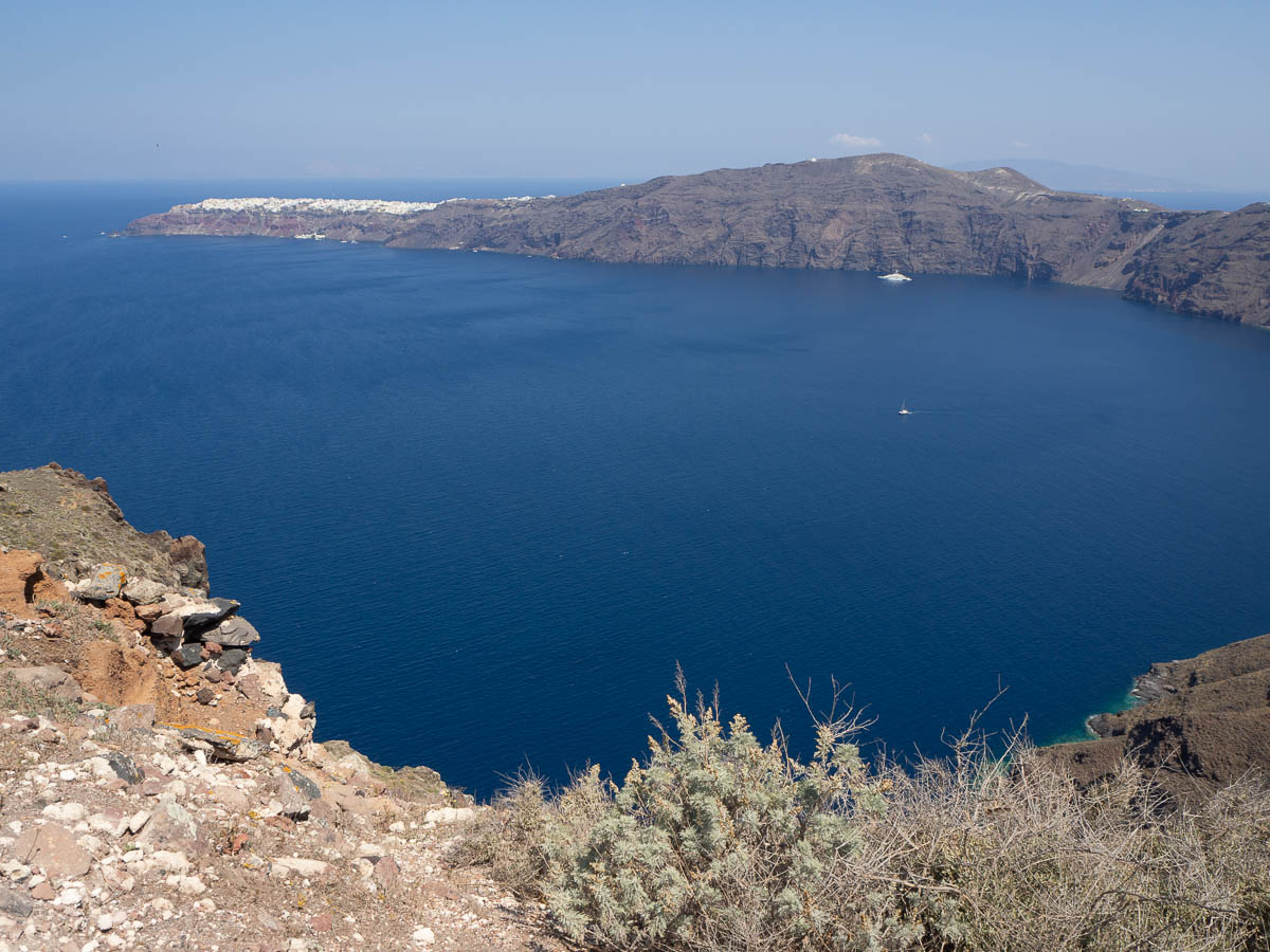 The landscape between Fira and Oia was mostly volcanic semi-desert, occasionally interrupted by tourist accommodation in one shape or another. This island truly has a lot of hotels. Then again, I can’t think of anything else they could do if they didn’t have any tourists, because it’s not like you could grow anything much here.