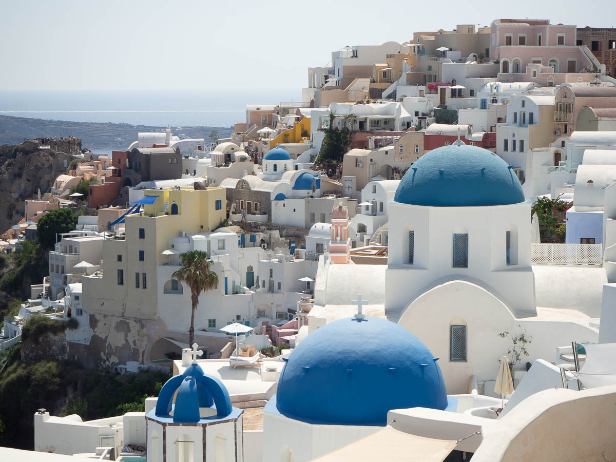 Oia is the town where the most famous photos of Santorini tend to be taken, with its blue-domed white buildings.