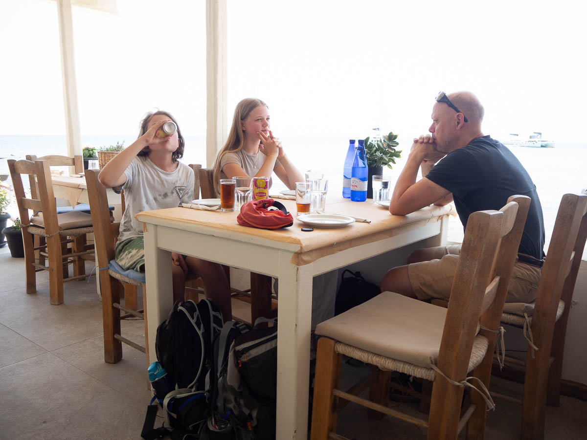 We had lunch at the beach in Akrotiri, which was a much calmer experience than the crowds in Kamari. I wanted to try something local so I ordered red mullet. My plate did indeed contain a bunch of red fish. I was informed that even the fins were usually eaten and would taste like chips/crisps, which indeed they did.
