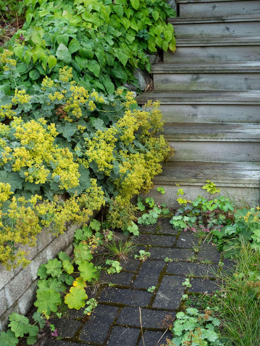 As a result, parts of the garden are looking rather weedy. But here the weeds are all pretty, self-seeded perennials from the planting spreading to the cracks between the paving stones. And some actual weeds as well, to be fair.