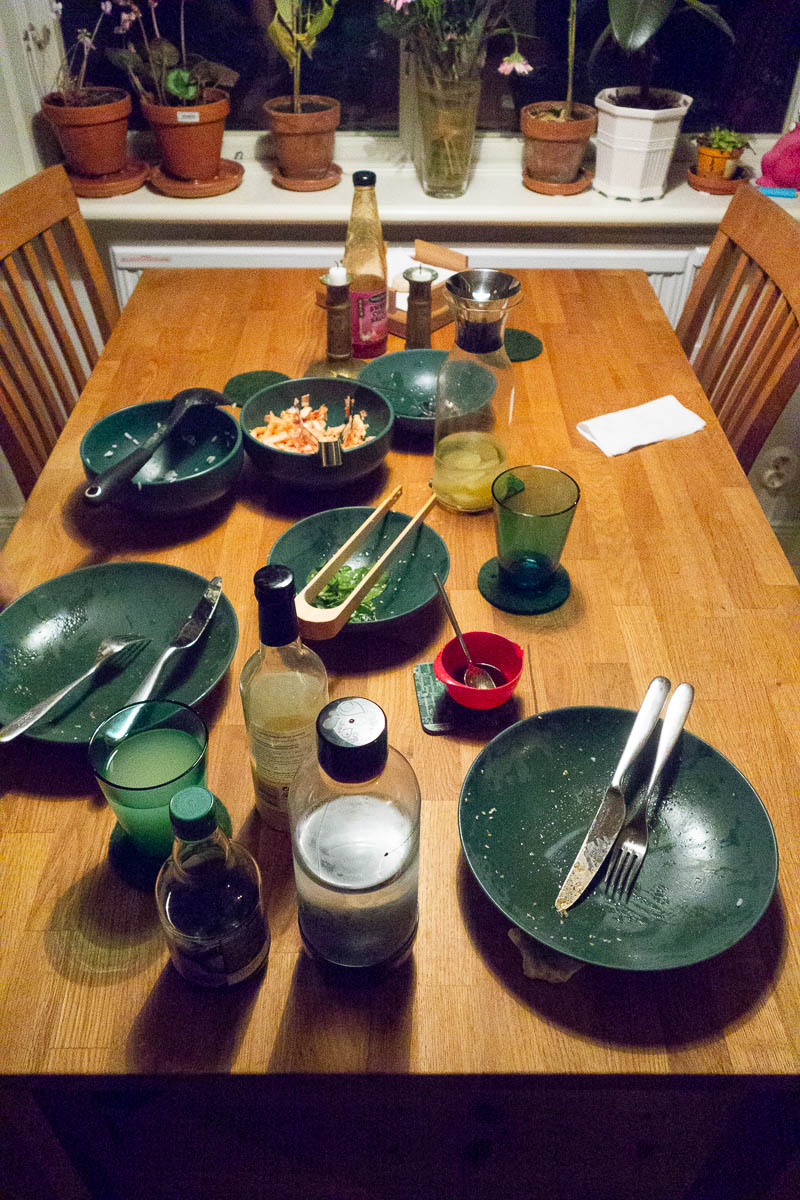 Reduced the amounts of all chillies and such by a factor of three or four, and some of it was still super spicy. We didn’t manage to eat all the spicy cabbage salad.