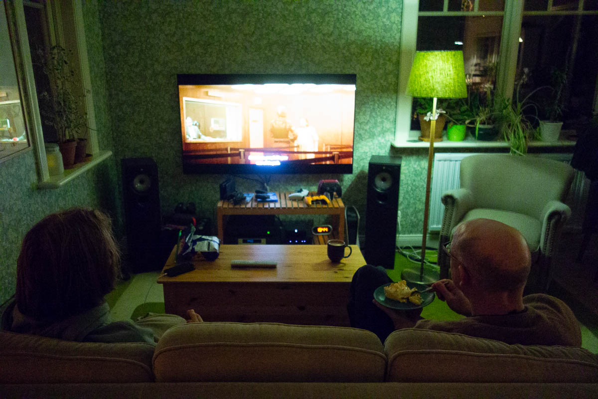 After dinner, Ingrid disappeared to her room, while Adrian & Eric watched season 2 of Loki, accompanied by potato chips for Adrian and some leftover lemon merengue pie for Eric.