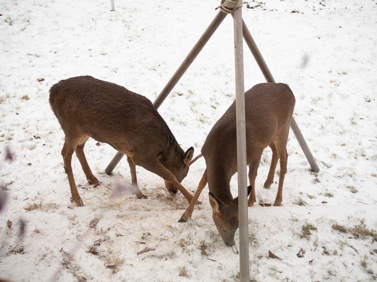 Now with the snow, the deer also come by to eat the bits that the birds spill.