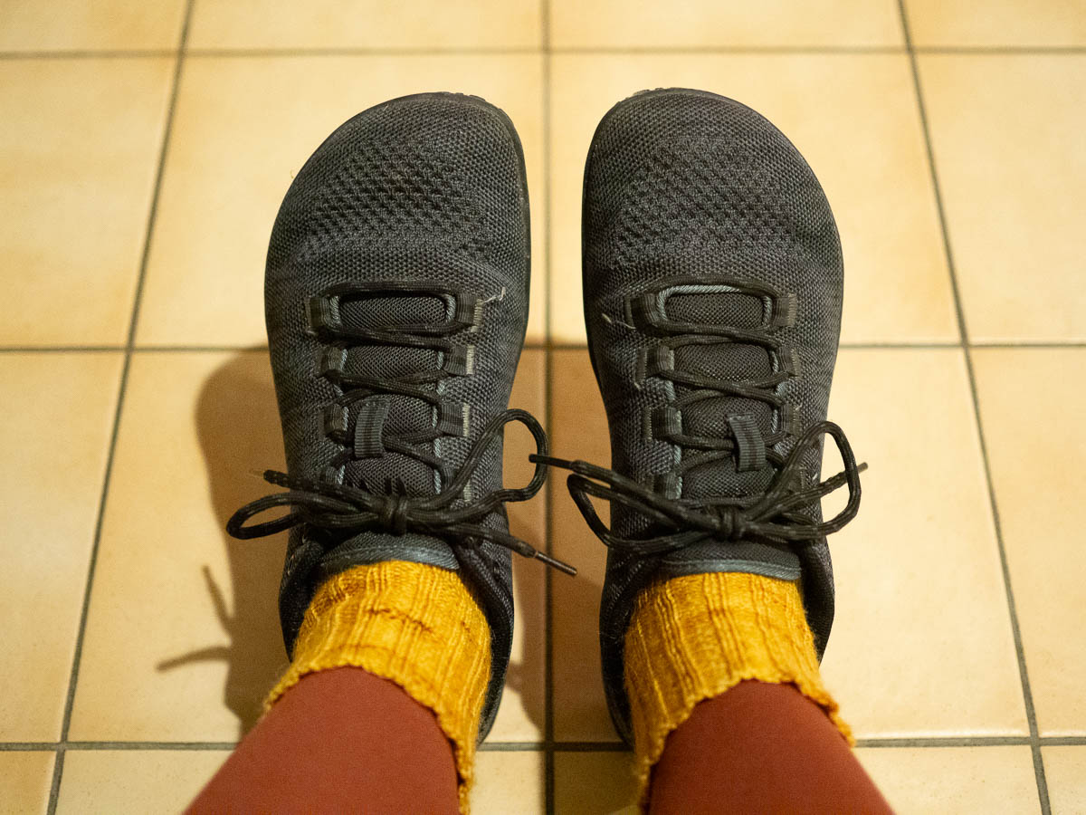A few months ago a colleague, who was curious about barefoot shoes, asked me if I had noticed any downsides to them at all. The only thing I could think of was the looks. Nobody would describe these as stylish. They’re not exactly ugly, and in comparison to some current shoe fashion, they’re pretty OK. At least they don’t look like a lumpy, swollen blob of rubber and plastic like too many sneakers do these days.