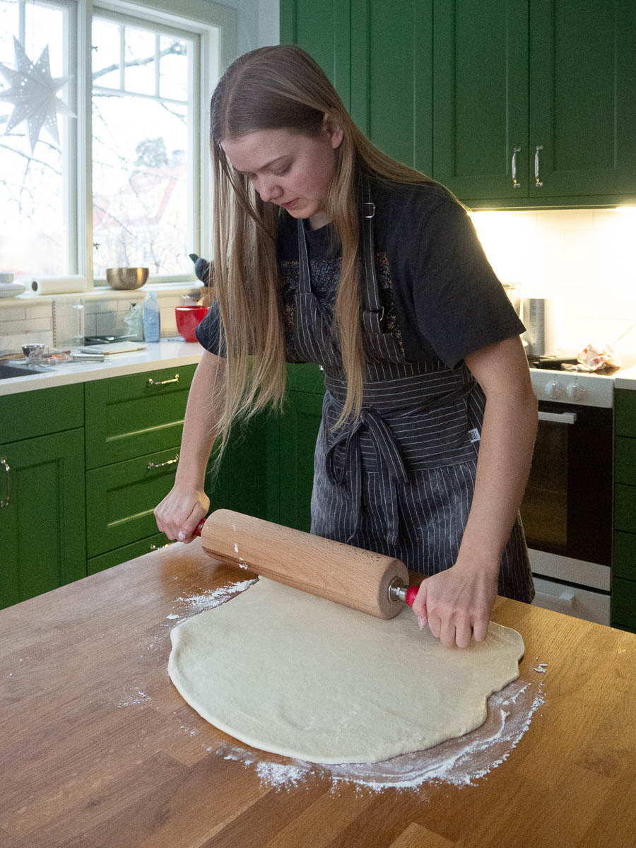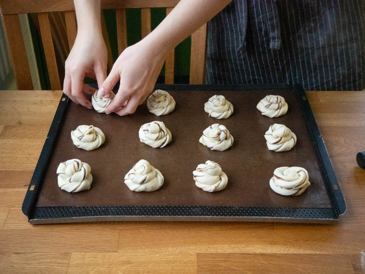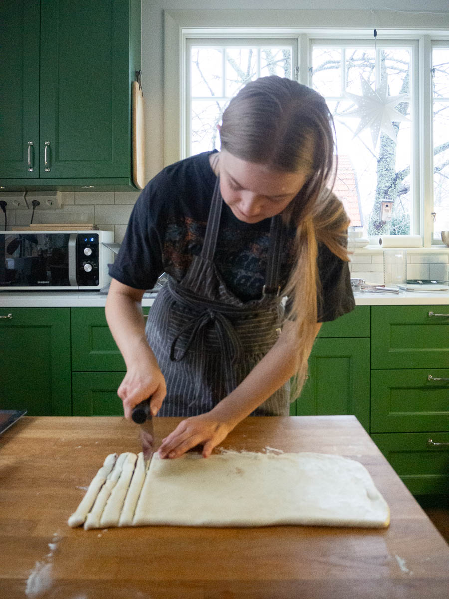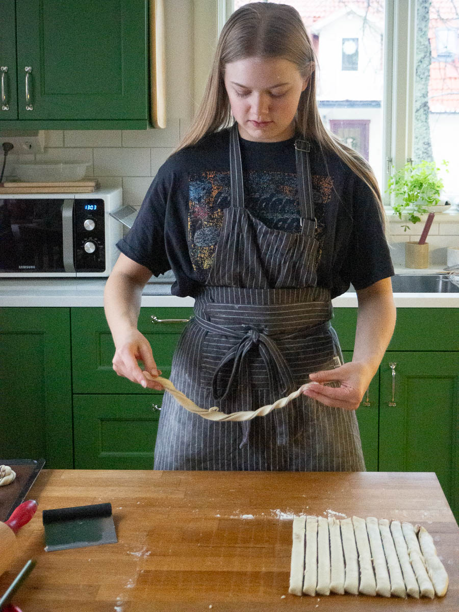 Ingrid wished and got a baking book for Christmas, about bread and buns and brunch. We’re all about to appreciate the results. She’s making mud cake buns – rolled buns with a mud cake filling.